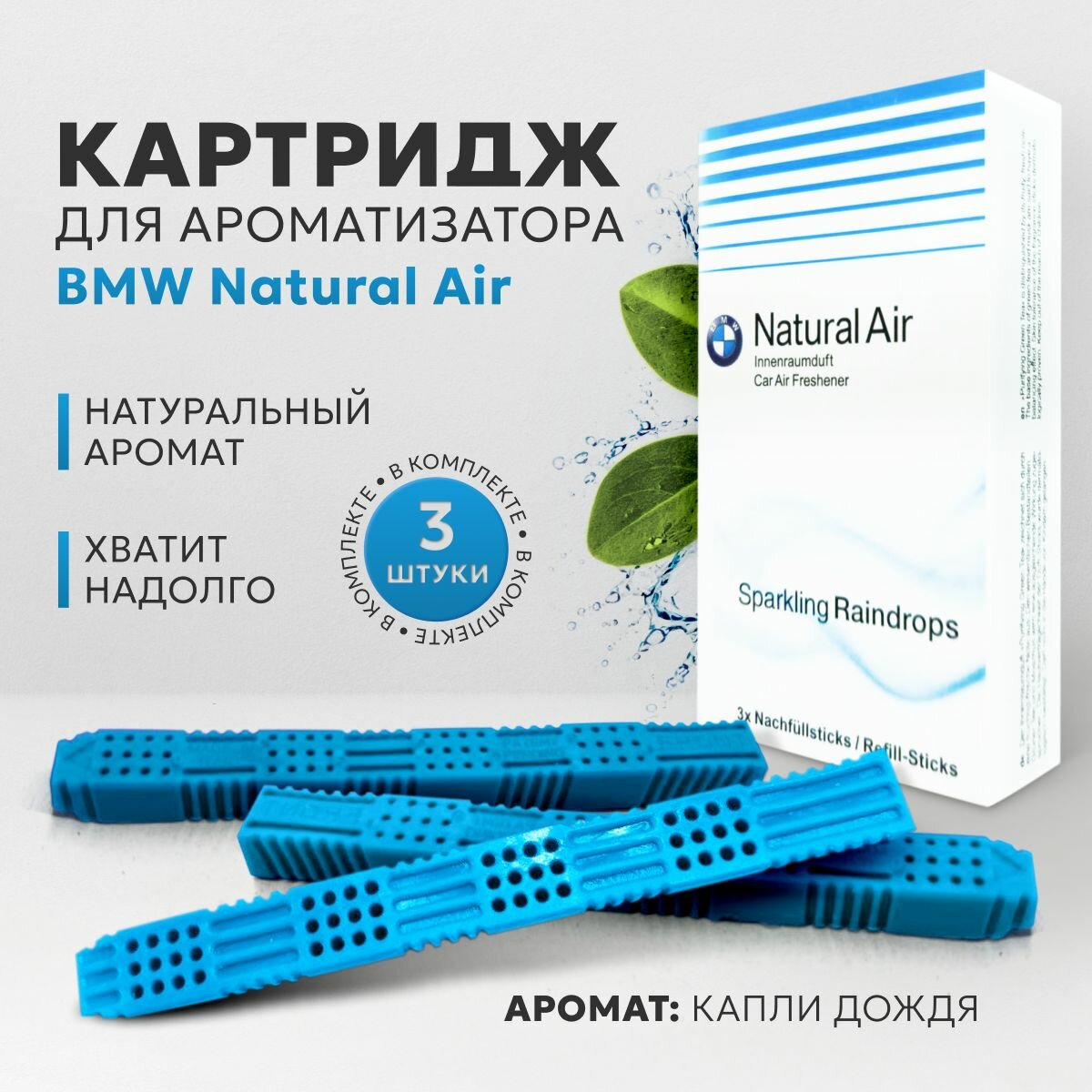 Ароматизатор в машину BMW сменный картридж вонючка на дефлектор автомобиля набор комплект из 3 штук стиков Капли дождя интересное: