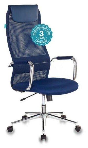 Кресло руководителя Бюрократ KB-9N/DB/TW-10N синий TW-01 TW-11 сетка крестовина хром