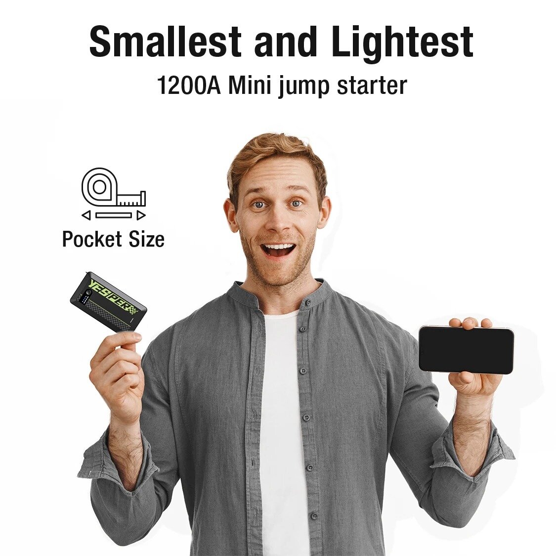 Пусковое устройство бустер YESPER 20000 mAh 3000A 12 В с подогревом. Портативное пуско-зарядное устройство для автомобиля.