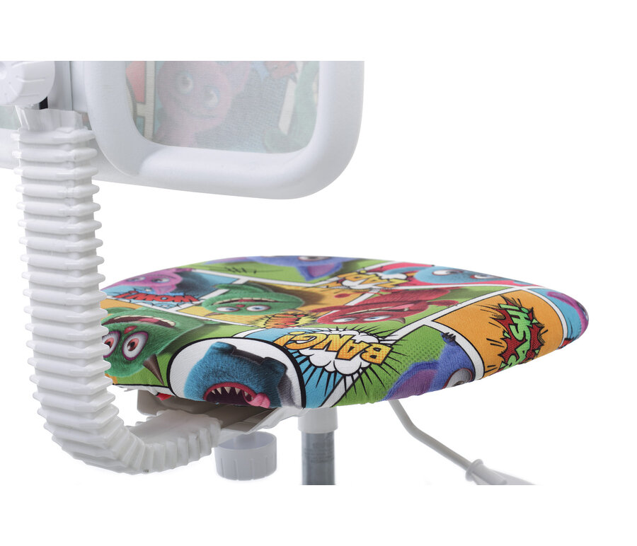 Кресло детское Chairman Kids 101, PL белый, ткань велюр, монстры, рег. по высоте, без подлокотников