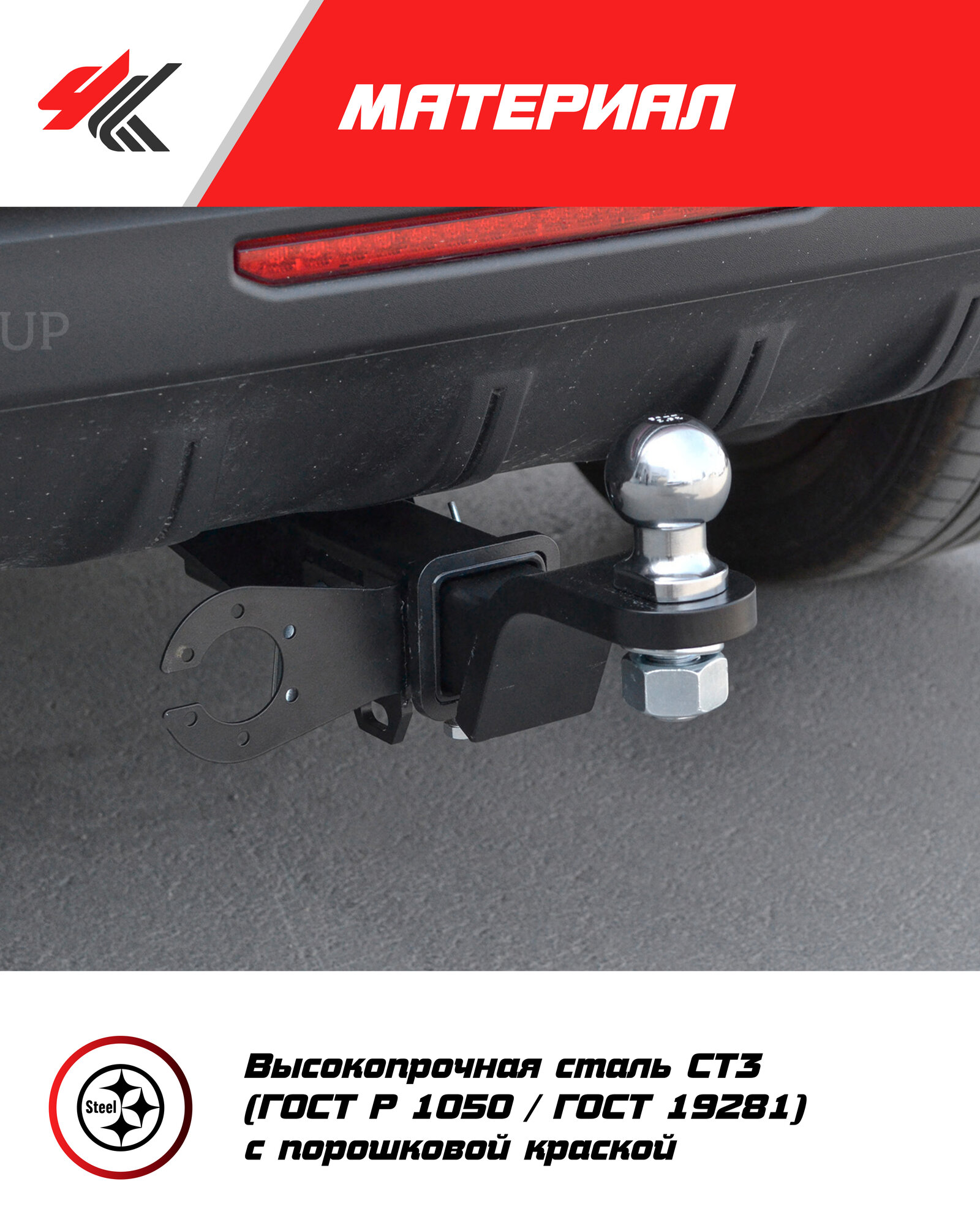 | Подробная комплектация | A) Болт М10х20 - 1 шт. B) Болт М10х1,25х40 - 4 шт. С) Болт М14х45 - 4 шт. D) Гайка М10х1,25 - 2 шт. E) Гайка М10 - 1 шт. F) Шайба 10 - 8 шт. G) Шайба 10 гроверная - 5 шт. H) Шайба 14 - 4 шт. I ) Шайба 14 гроверная - 4 шт. J) Палец гнутый гальванизированный - 1 шт. K) Шплинт пружинный игольчатый - 1 шт. L) Кронштейн розетки - 1 шт. M) Съёмный шар в сборе - 1 шт. N) Кронштейн левый - 1 шт. O) Кронштейн правый - 1 шт. P) Балка ТСУ - 1 шт. Q) Заглушка приёмного отверстия - 1 шт. |