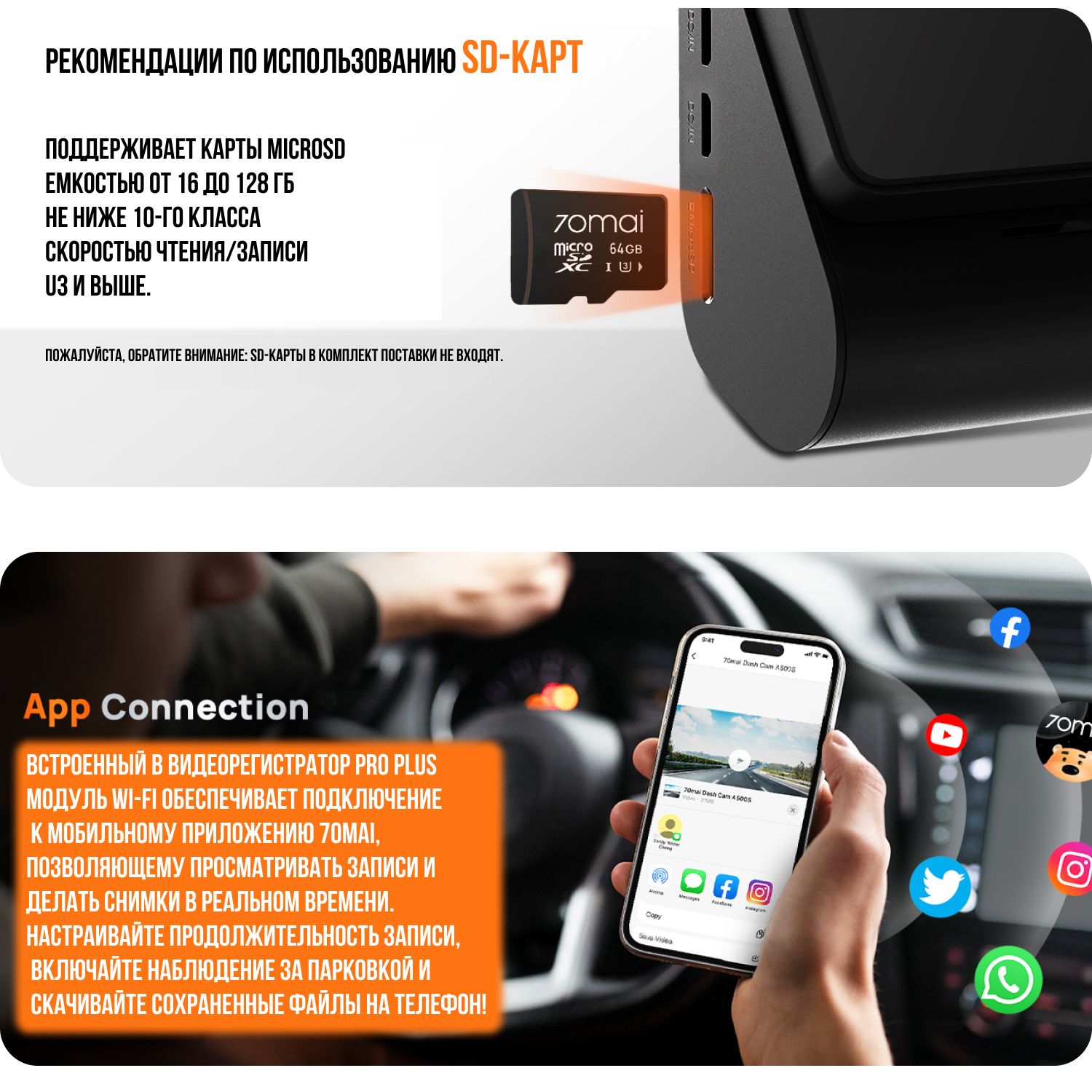 Видеорегистратор 70mai Dash Cam Pro+ A500S с задней камерой RC11 интересное: