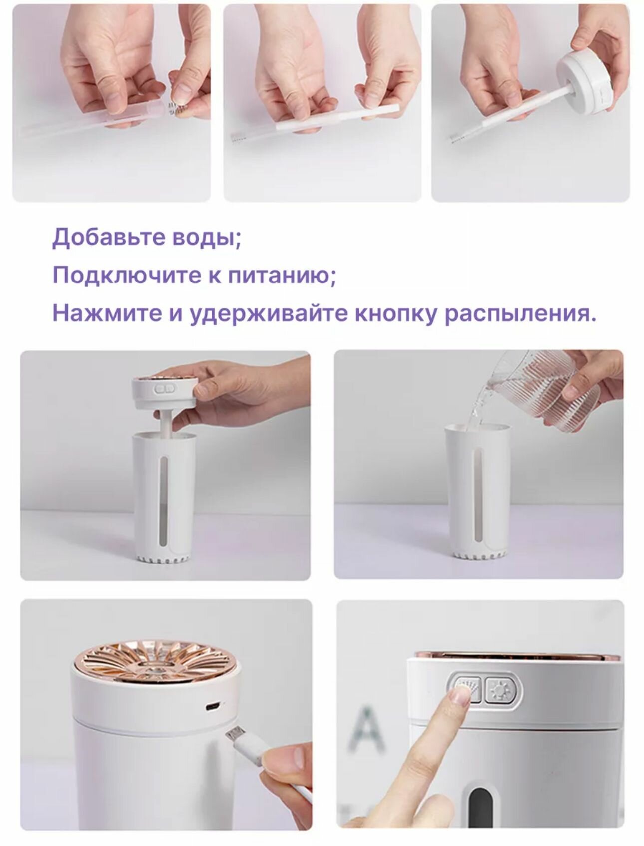 | Подробная комплектация | Аромадиффузор, кабель, инструкция |
