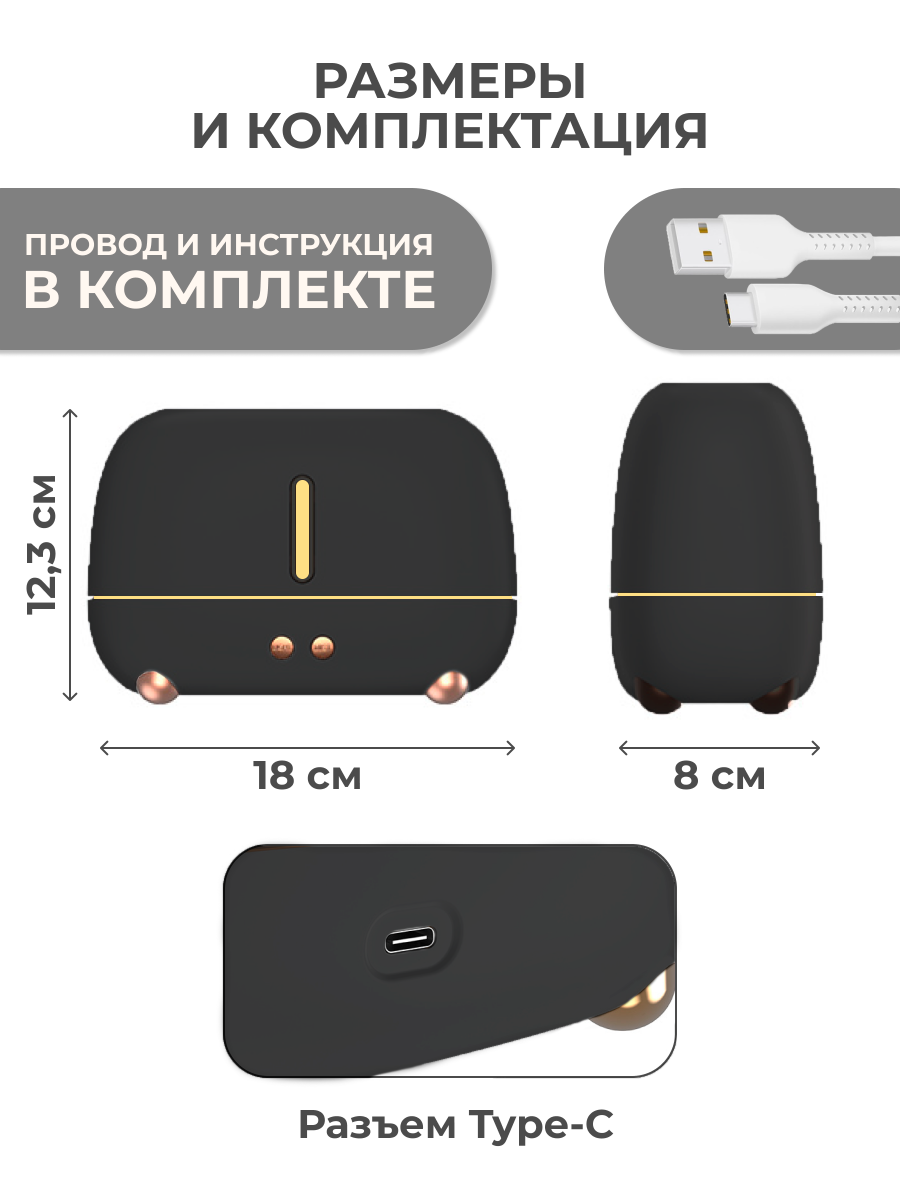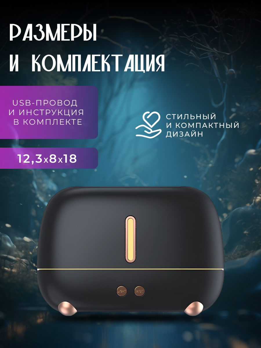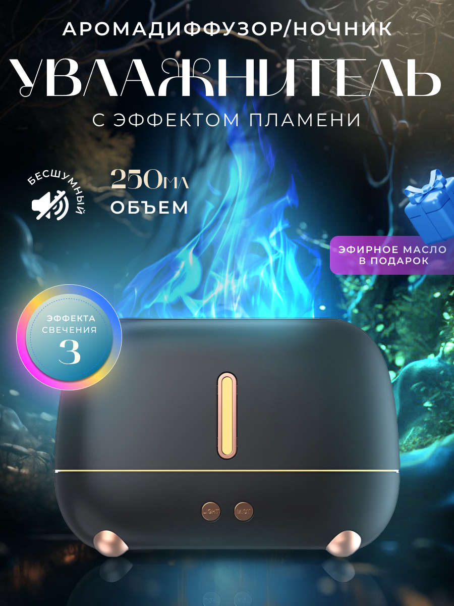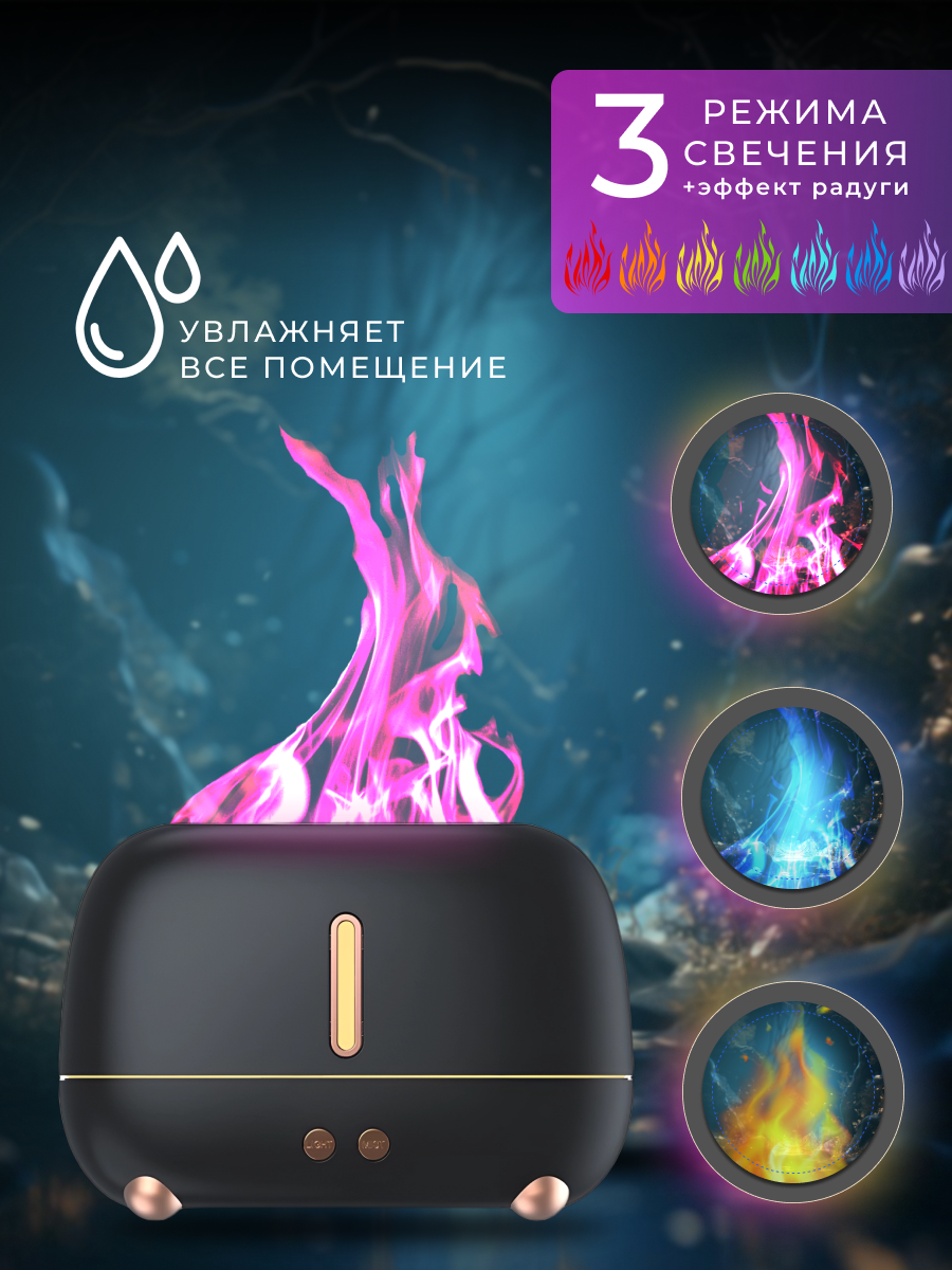 Увлажнитель воздуха ультразвуковой с эффектом пламени , Аромадиффузор ночник для дома, Черный интересное: