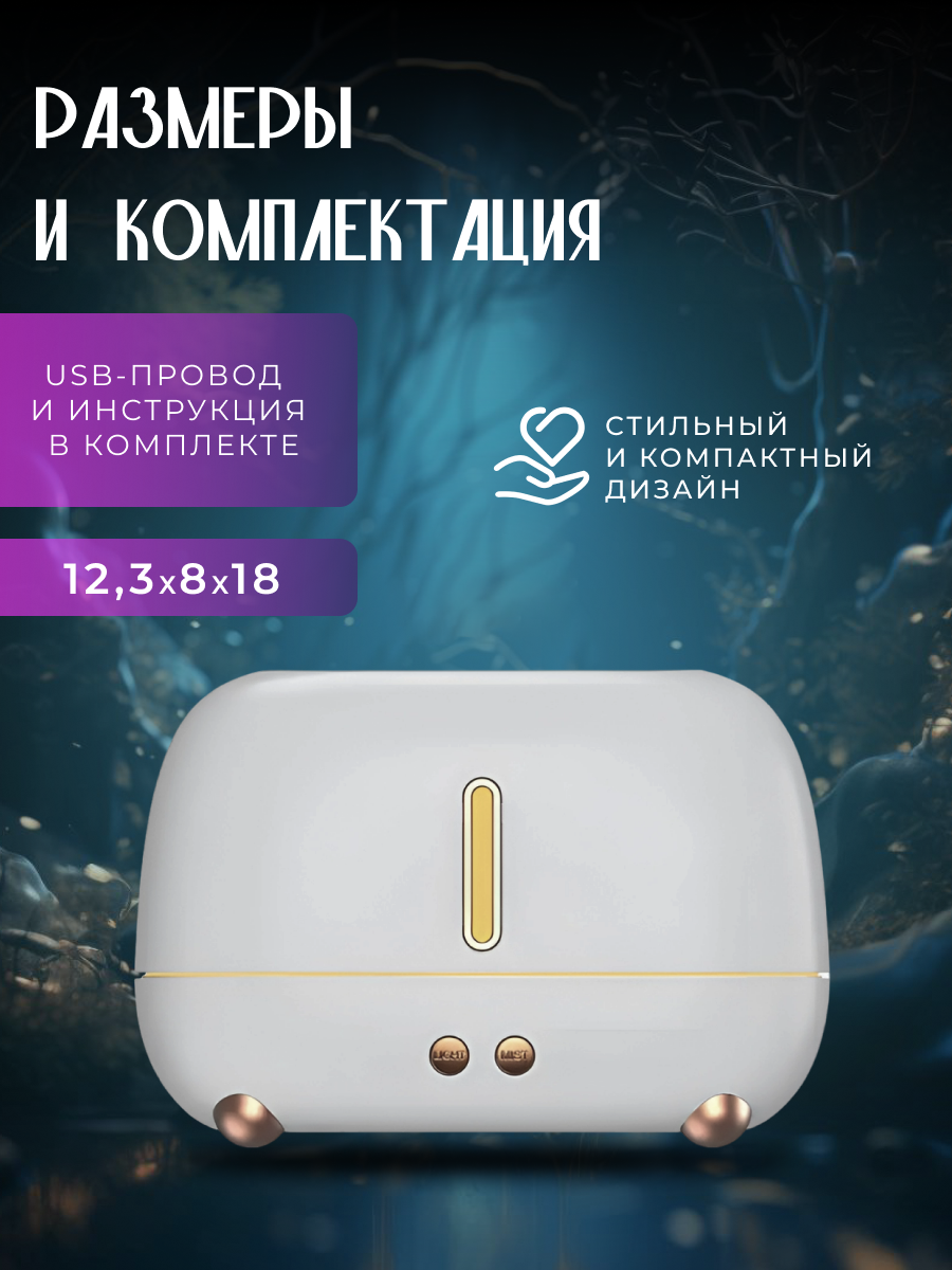 Увлажнитель воздуха ультразвуковой с эффектом пламени , Аромадиффузор ночник для дома, Белый интересное: