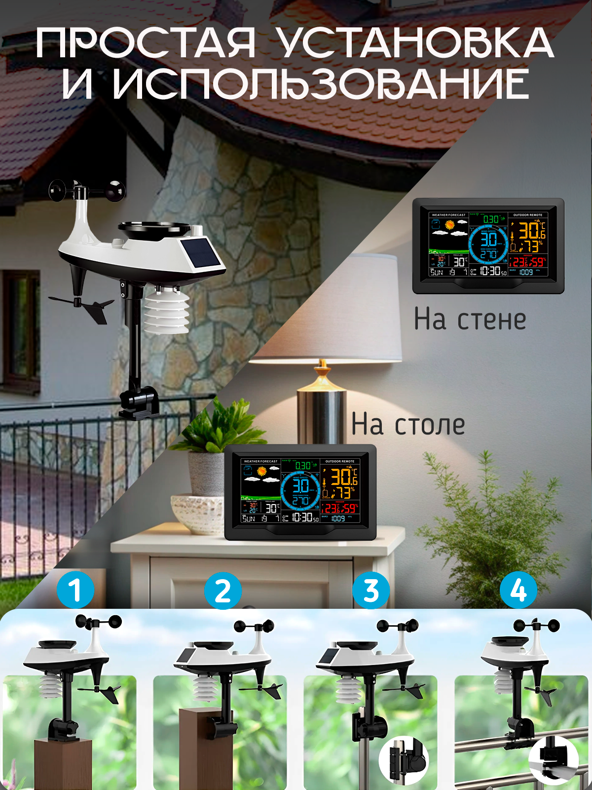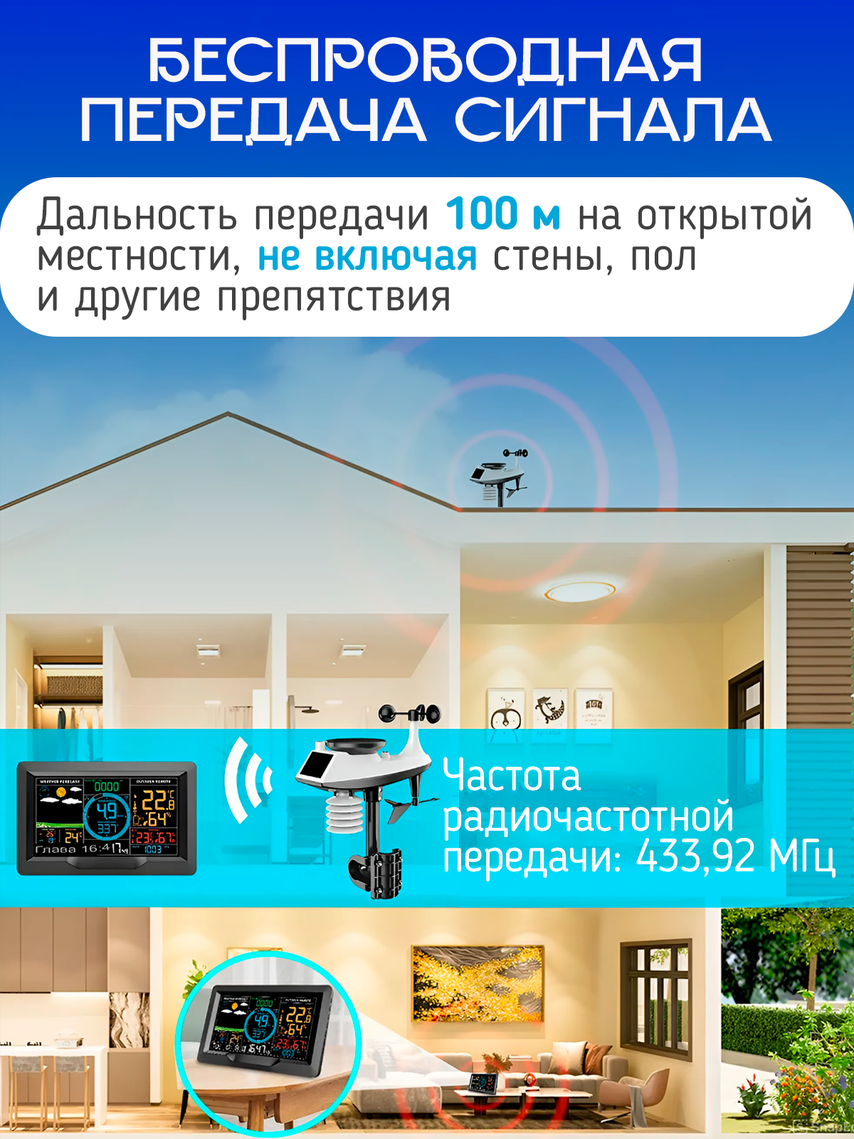 Метеостанция для дома с выносным датчиком профессиональная, погодная станция для дома
