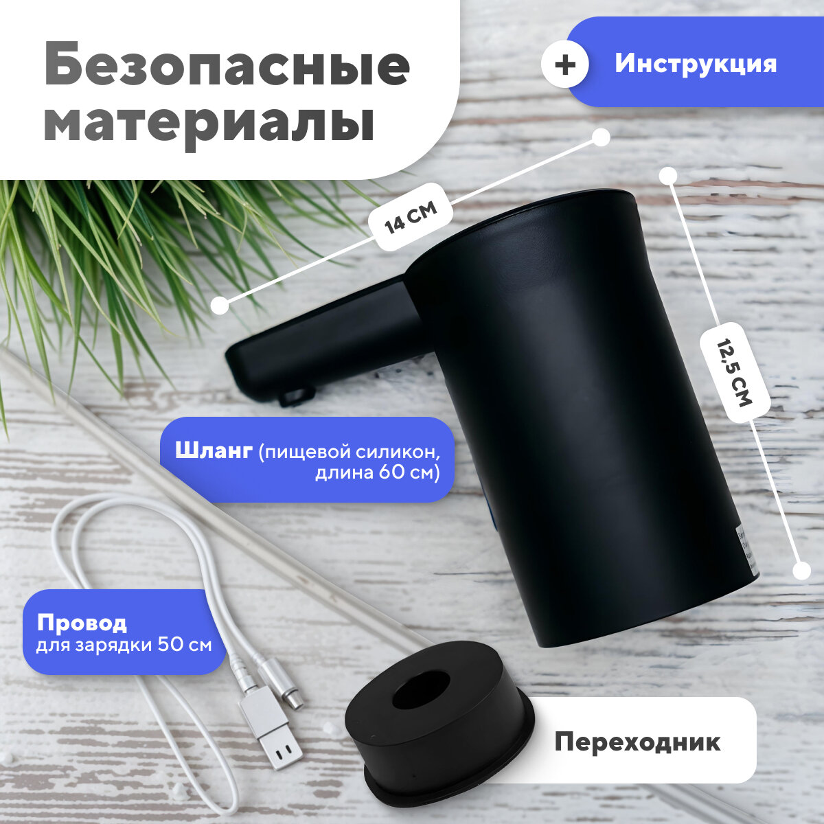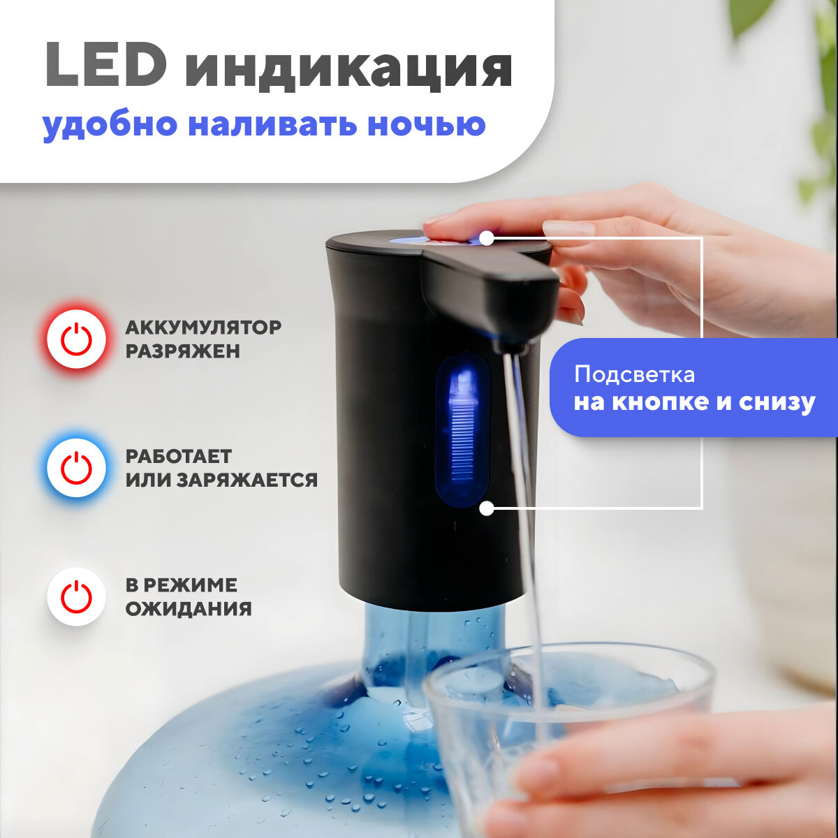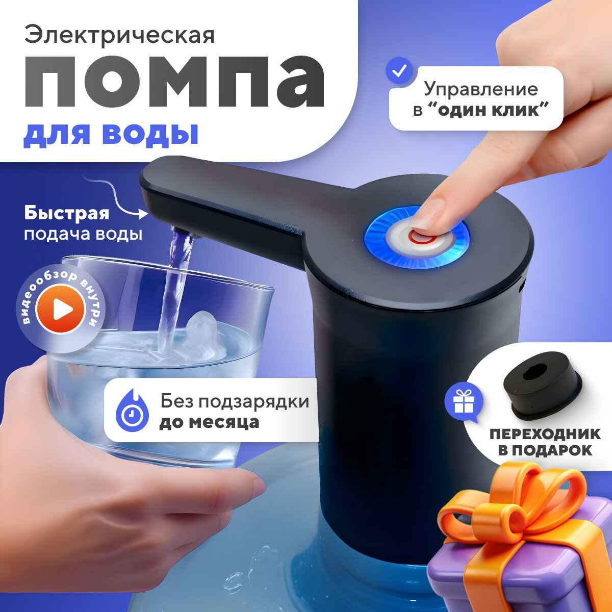 Помпа для воды электрическая на бутыль 19 литров, черная интересное: