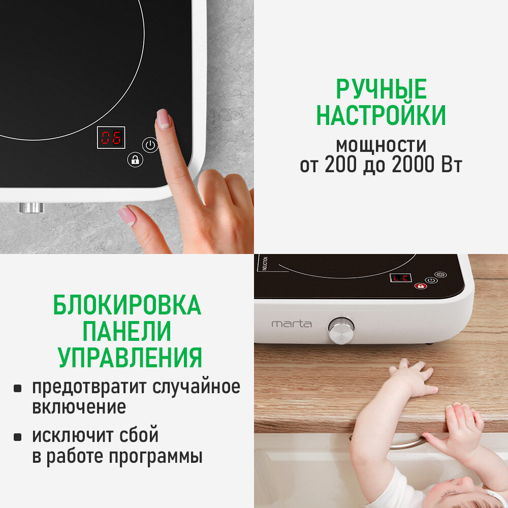Электрическая индукционная плитка MARTA MT-HP4223A белый интересное: