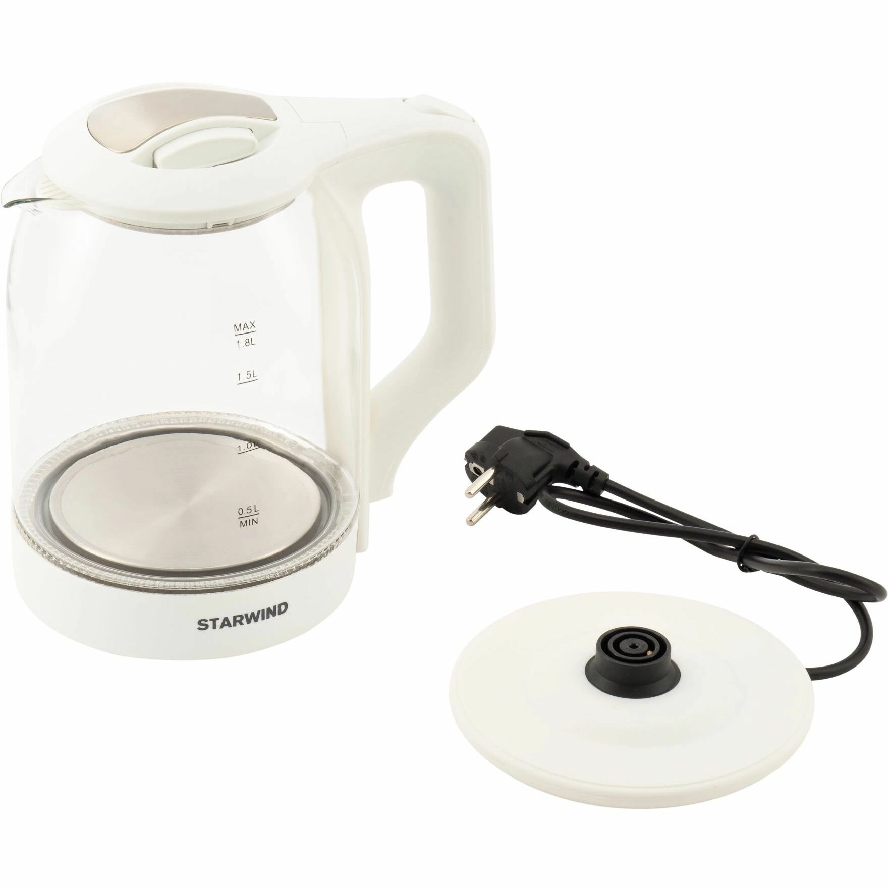 Чайник Starwind SKG1056 белый/прозрачный (стекло)