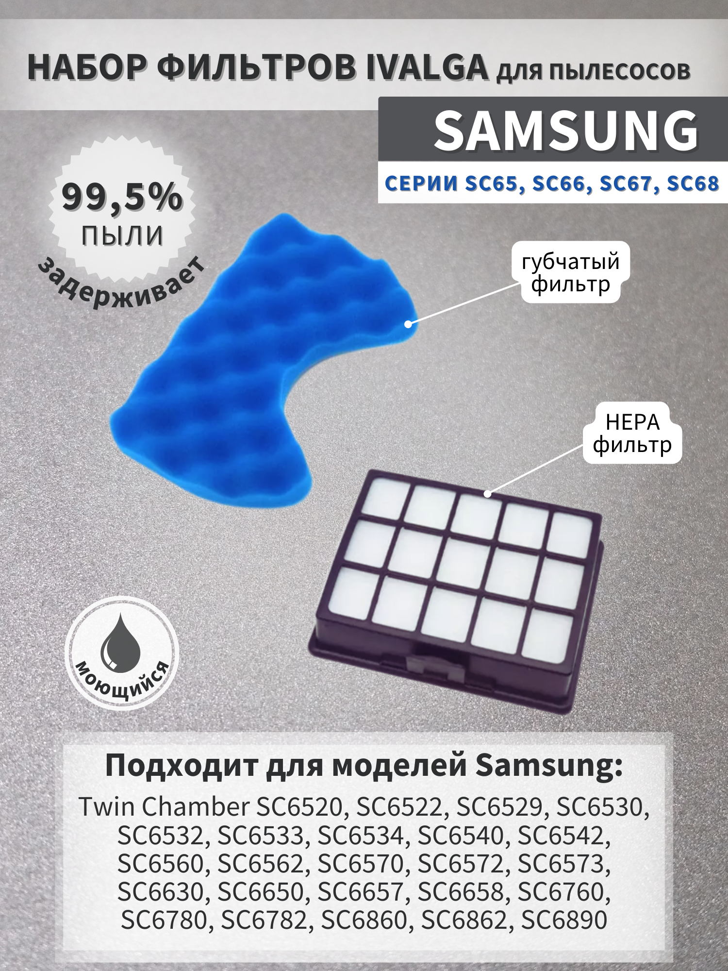 | Совместимые модели | HEPA фильтр для пылесоса Samsung |
