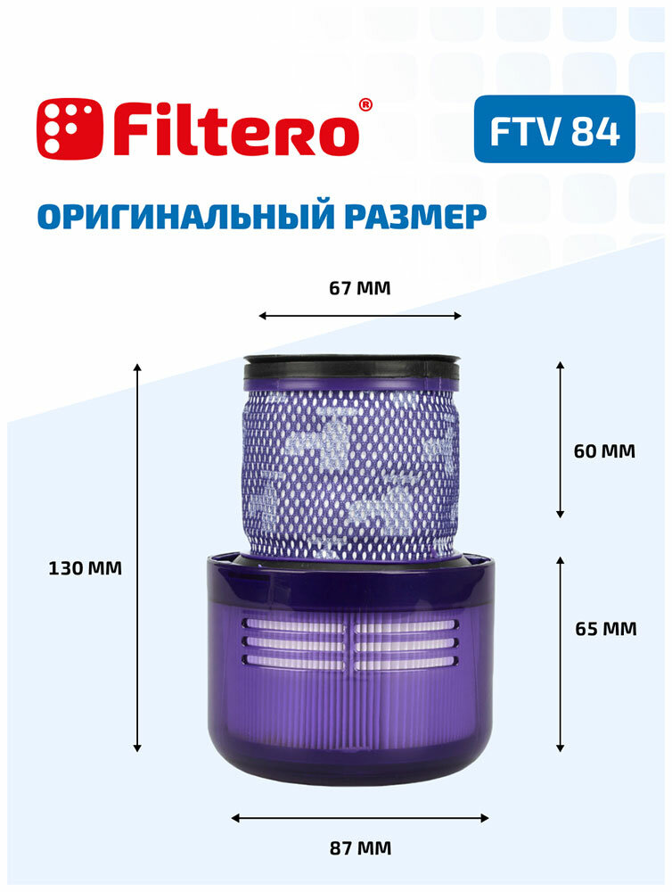 Filtero FTV 84 фильтр для вертикального пылесоса DYSON V11 Absolute Pro, Animal + Plus, SV 14, V15