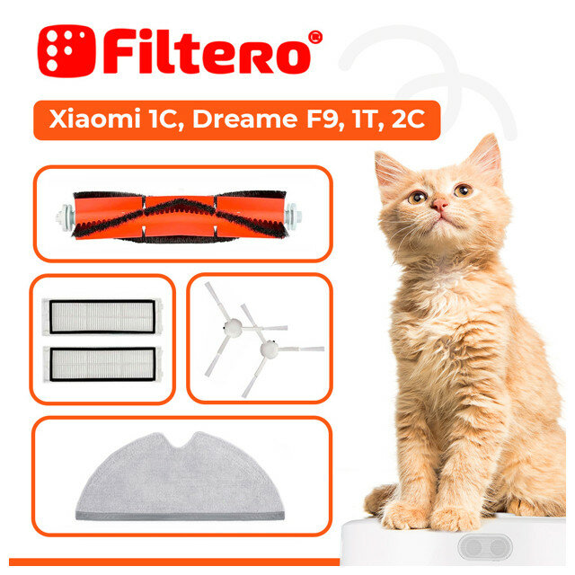 Набор аксессуаров Filtero ftx 02 для робот-пылесоса xiaomi mi robot vacuum mop 1c, dream f9, 1т, 2с,