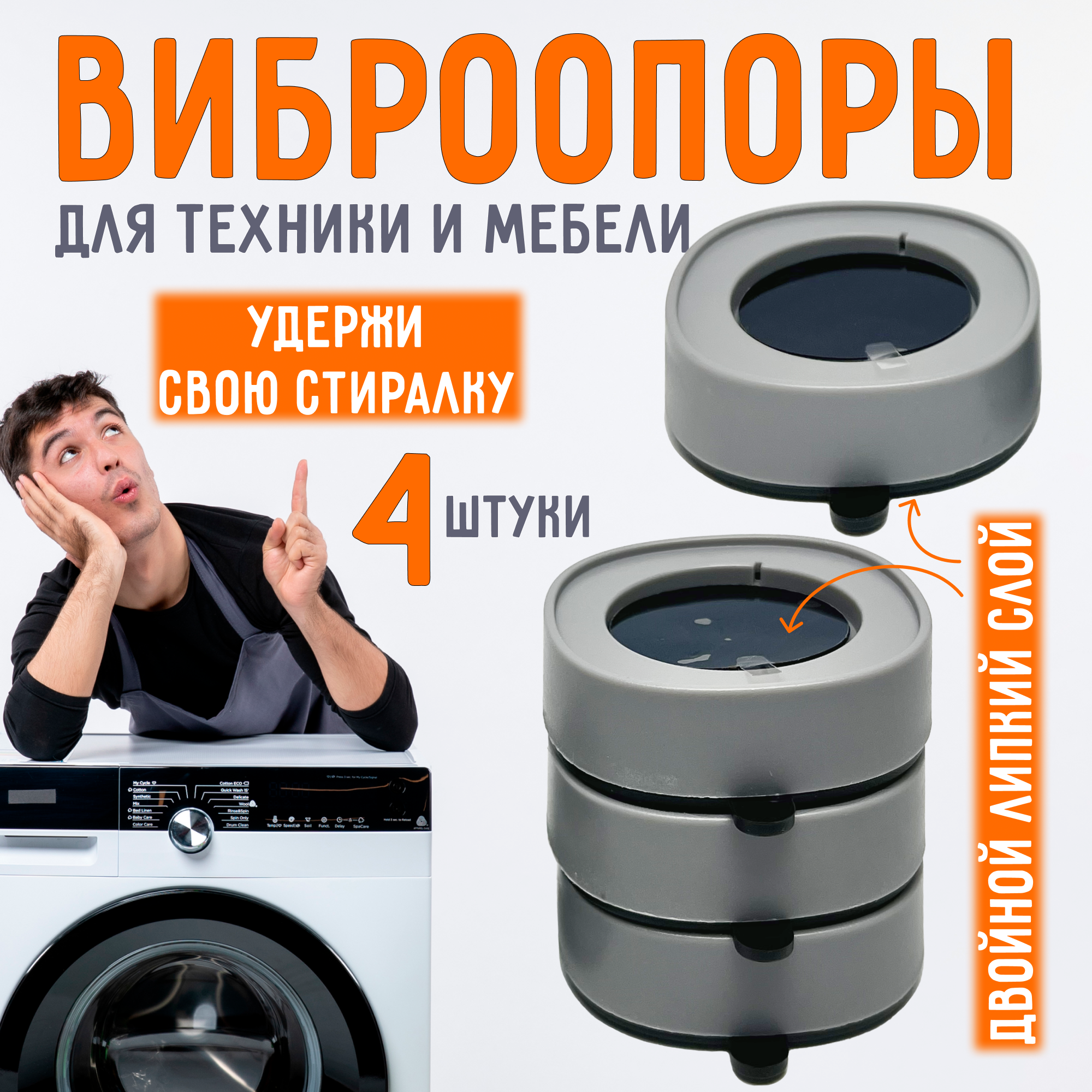 Антивибрационные подставки - ножки для стиральной машины, холодильника, мебели (виброопоры), круглые белые, 4 штуки интересное: