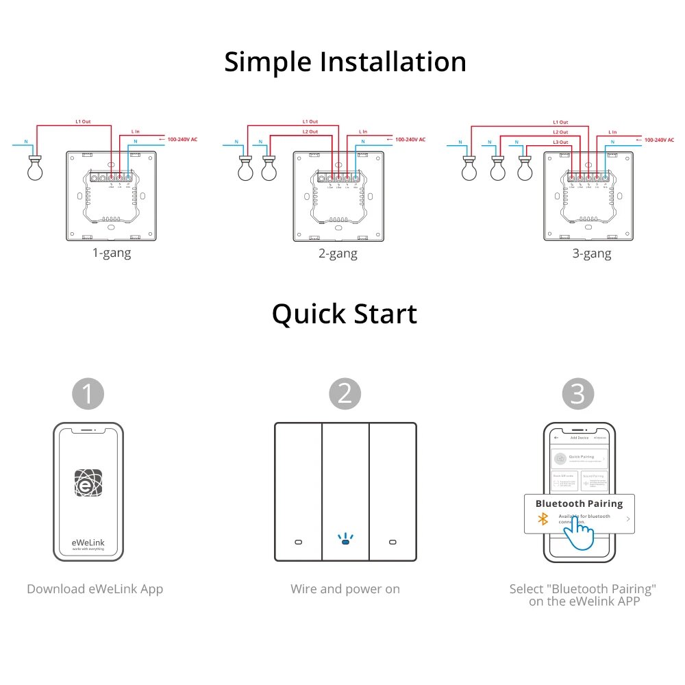 Умный настенный выключатель SONOFF M5 SwitchMan, 80/86, тип 1/2/3, M5-1C-86 Type