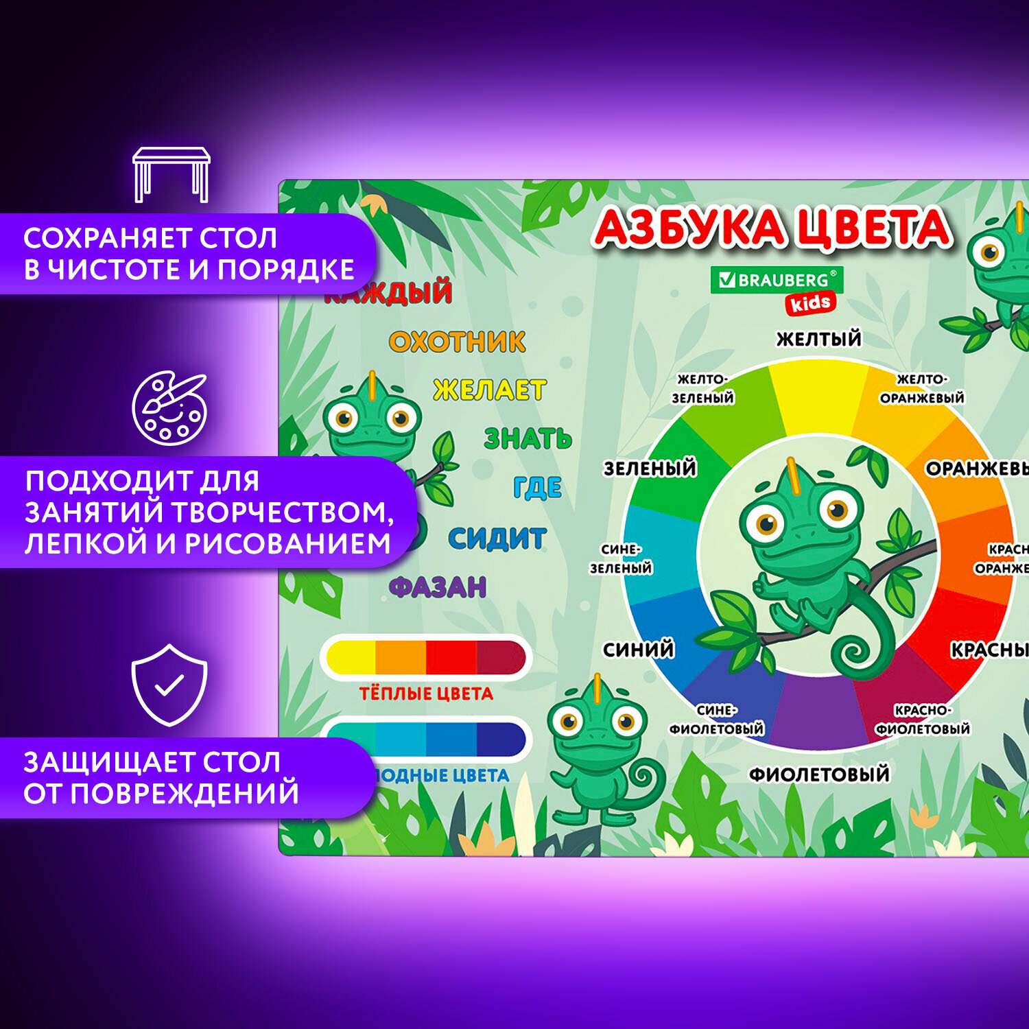 Настольное покрытие BRAUBERG KIDS для труда и творческих занятий, ПВХ, "Color map", 50х35 см, 272360, 2шт в компл. интересное: