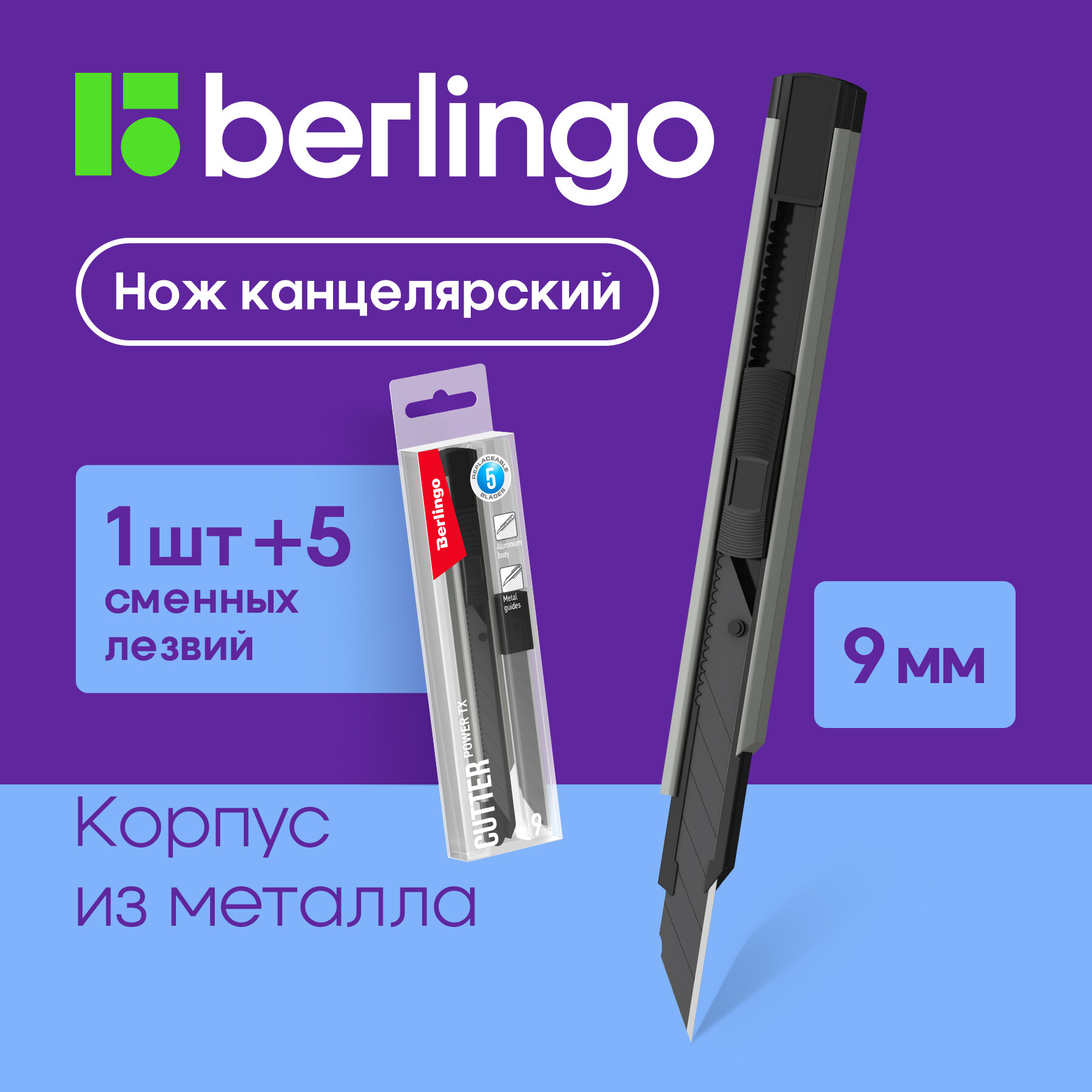 Нож канцелярский 9мм Berlingo "Power TX", auto-lock, металлический корпус + лезвия сменные 5шт., PET бокс интересное: