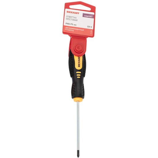 Отвертка крестовая PH 0х75 мм, двухкомпонентная рукоятка REXANT