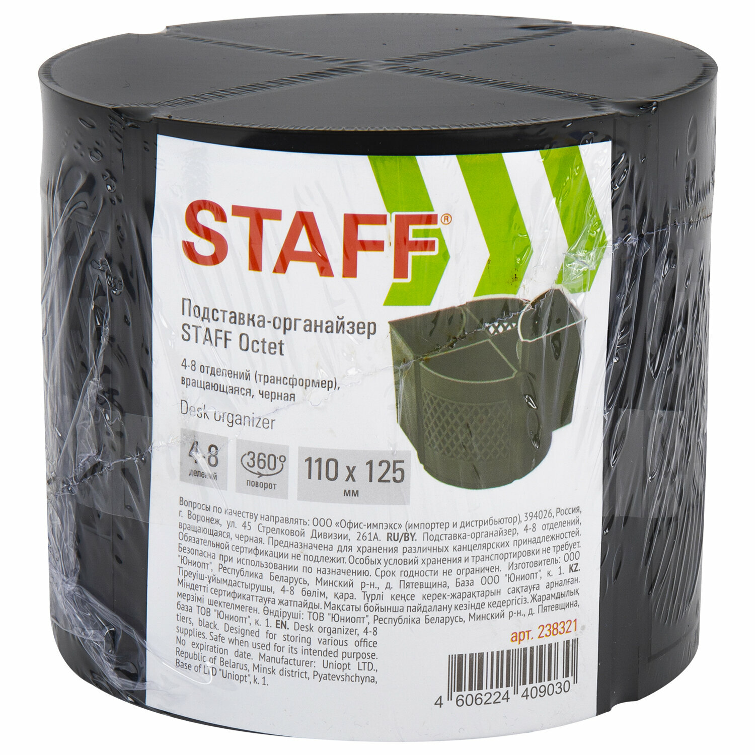 Купить Подставка для канцелярии, органайзер для ручек и карандашей настольный STAFF Octet, 4-8 отделений (трансформер), вращающаяся, черная, 238321