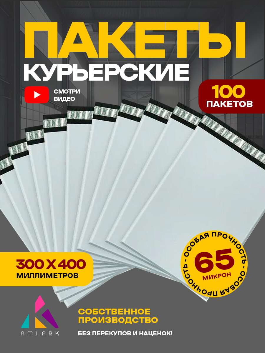 Курьерские пакеты AMLARK 300х400 мм с клеевым клапаном, без кармана, 500 штук