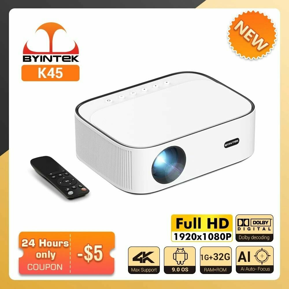 Купить Портативный мини проектор Byintek K45 Smart Android 9,0, проектор для домашнего кинотеатра