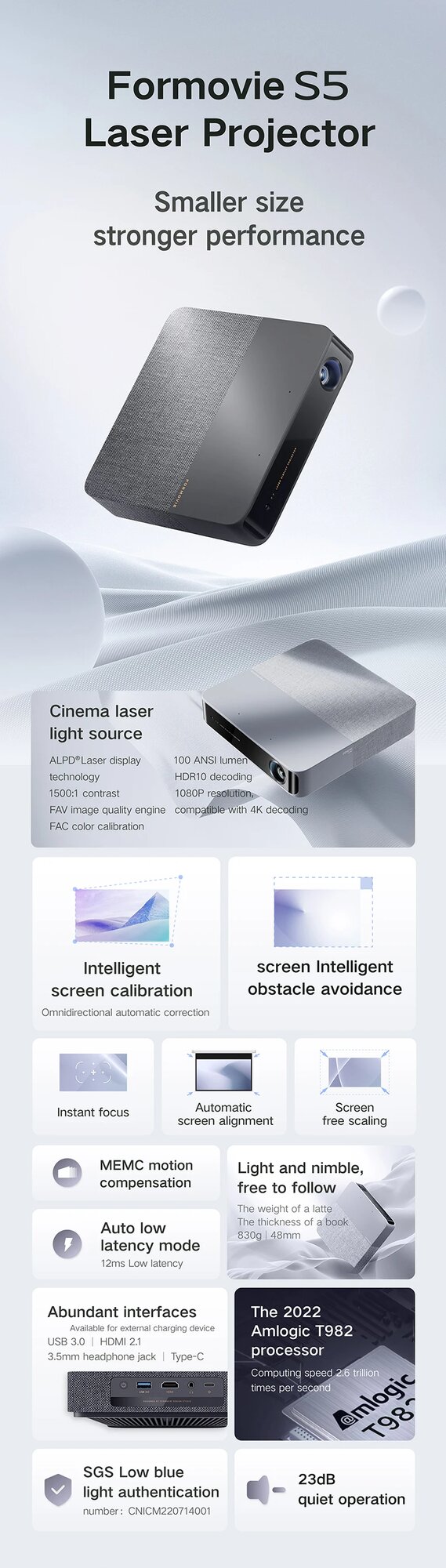 Лазерный проектор Formovie Fengmi S5, S5 With Stand интересное: