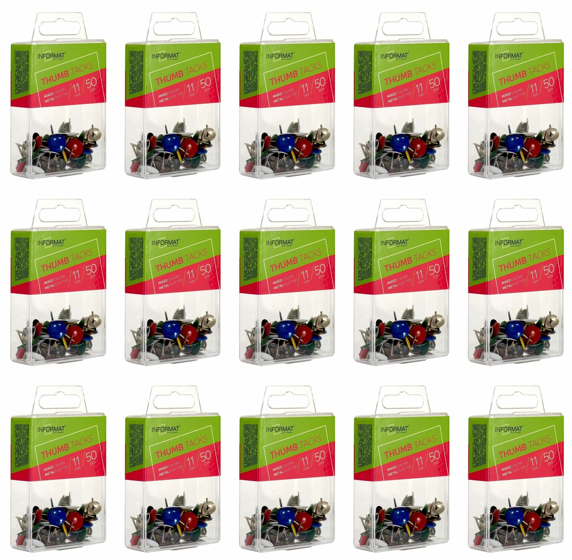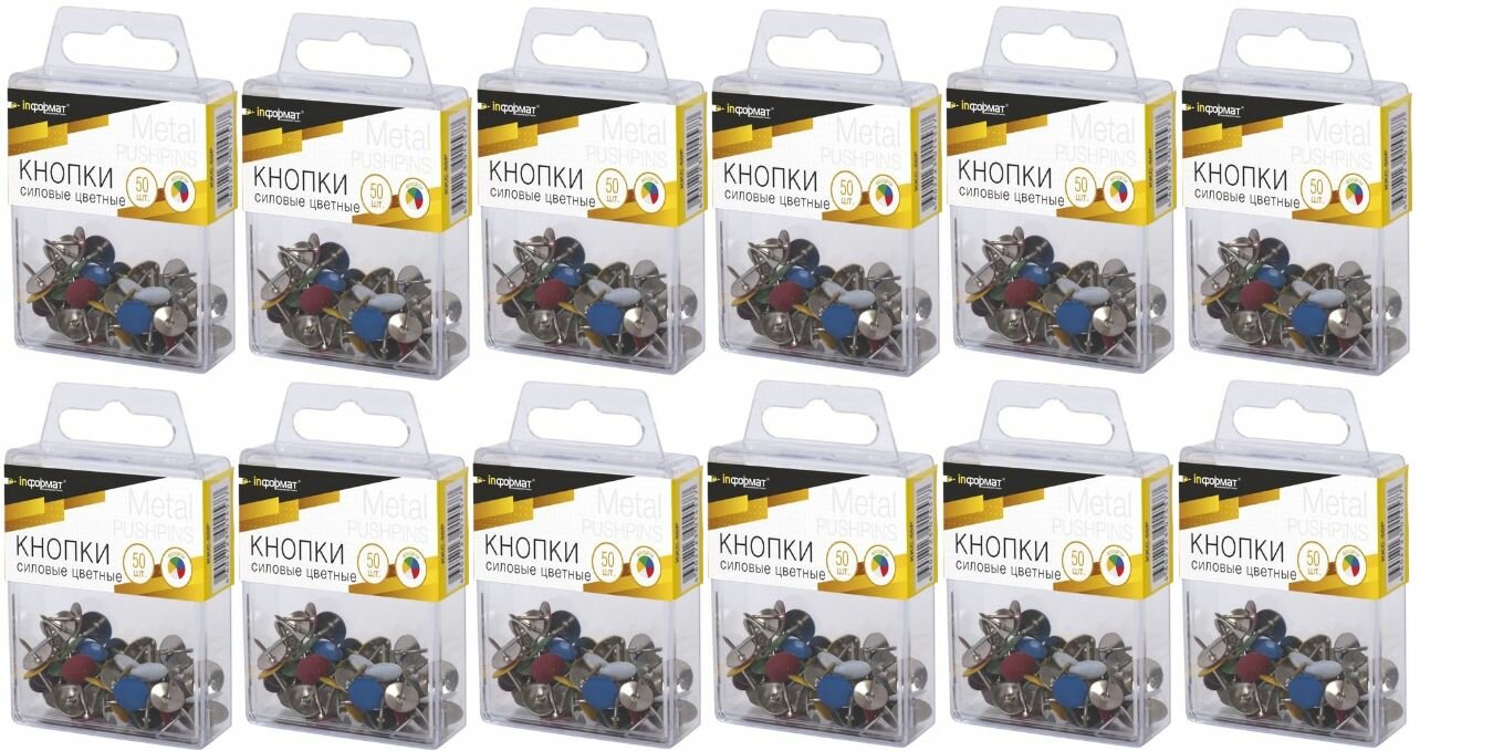 Кнопки канцелярские inформат, d=11мм, металлические усиленные, цветные, 50шт. (KKC-50P)