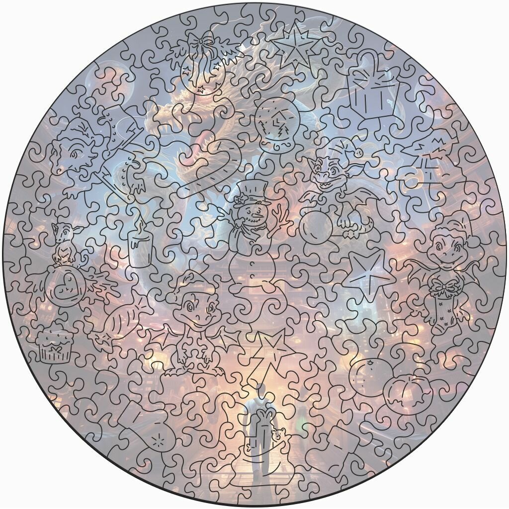 Деревянный пазл BoberBox "Дракон с подарками", 230 деталей