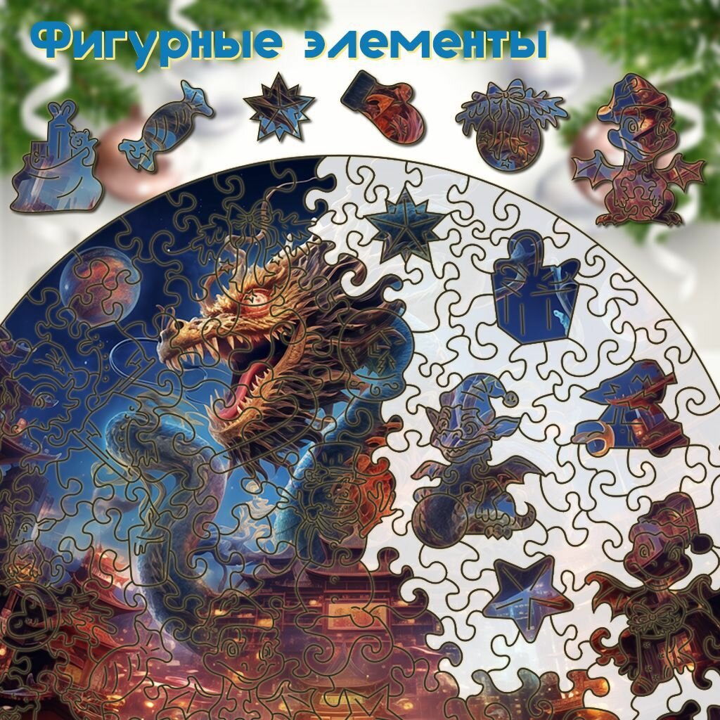Деревянный пазл BoberBox "Дед Мороз и Дракон", 230 деталей