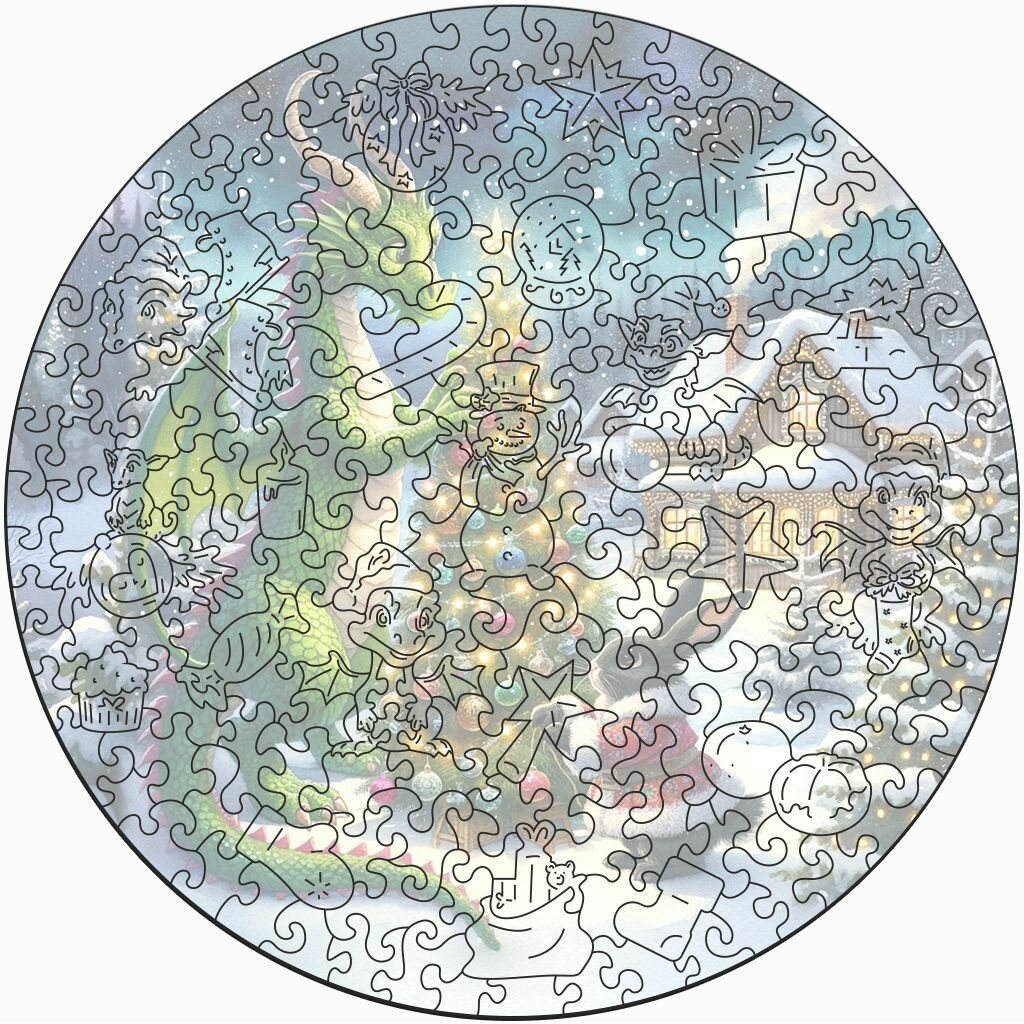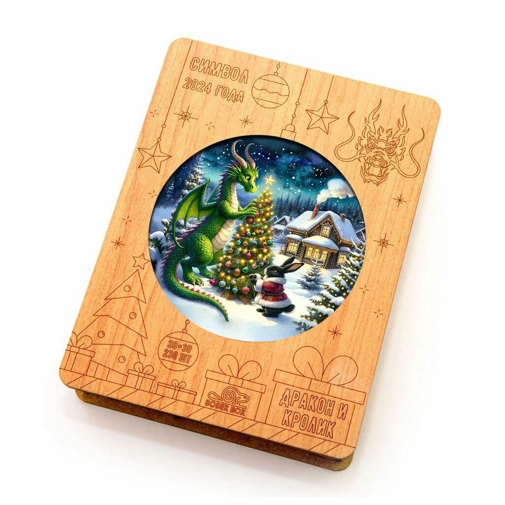 Деревянный пазл BoberBox "Дракон с подарками", 230 деталей