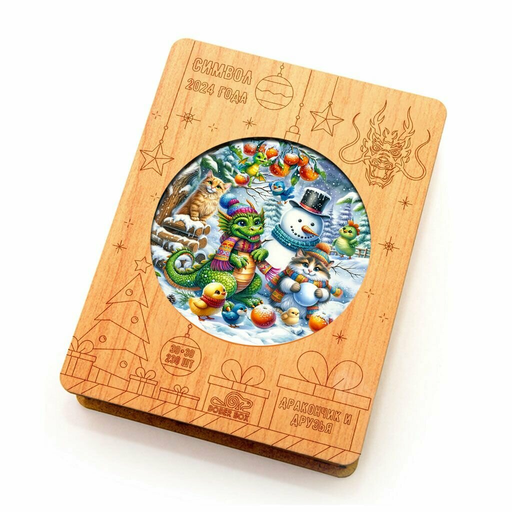 Деревянный пазл BoberBox "Дракон с подарками", 230 деталей
