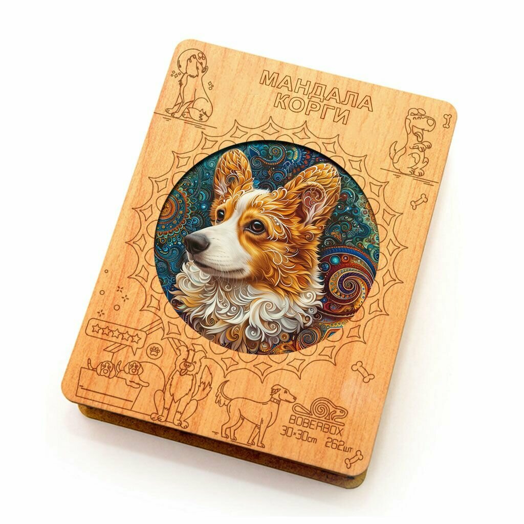 Деревянный пазл BoberBox "Мандала Корги триколор", 262 деталей
