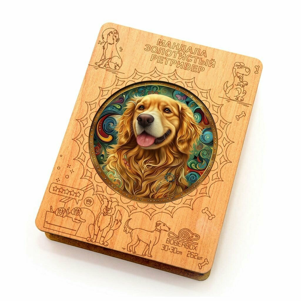 СохранитьДеревянный пазл BoberBox "Мандала Золотистый ретривер", 262 деталей интересное: