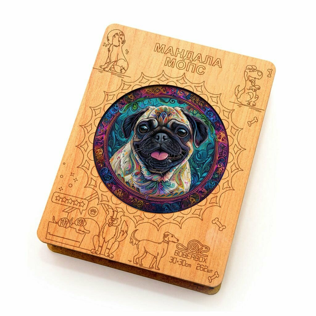 Купить Деревянный пазл BoberBox "Мандала Мопс", 262 деталей