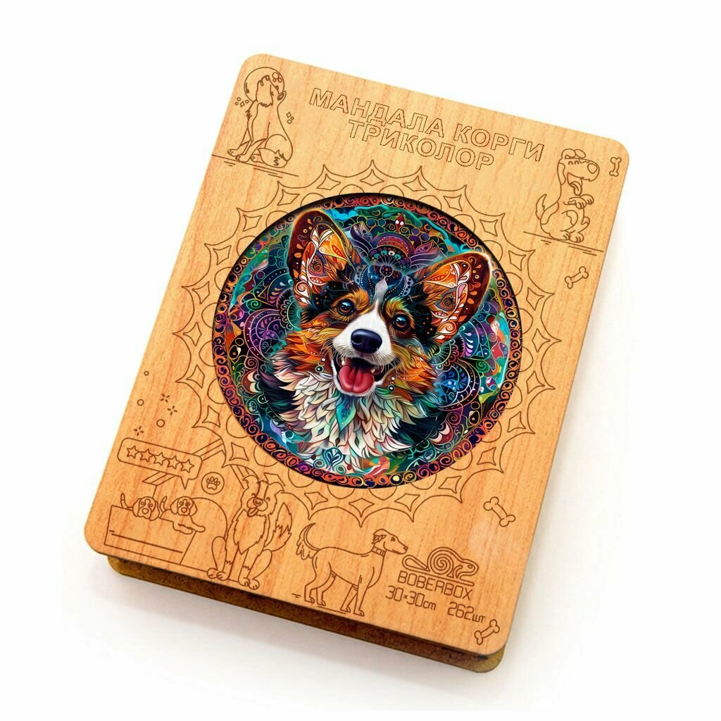 Купить Деревянный пазл BoberBox "Мандала Корги триколор", 262 деталей