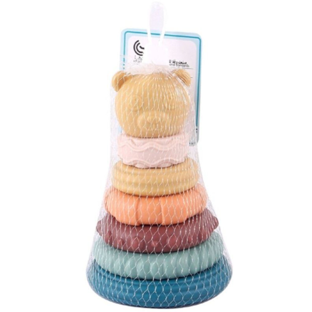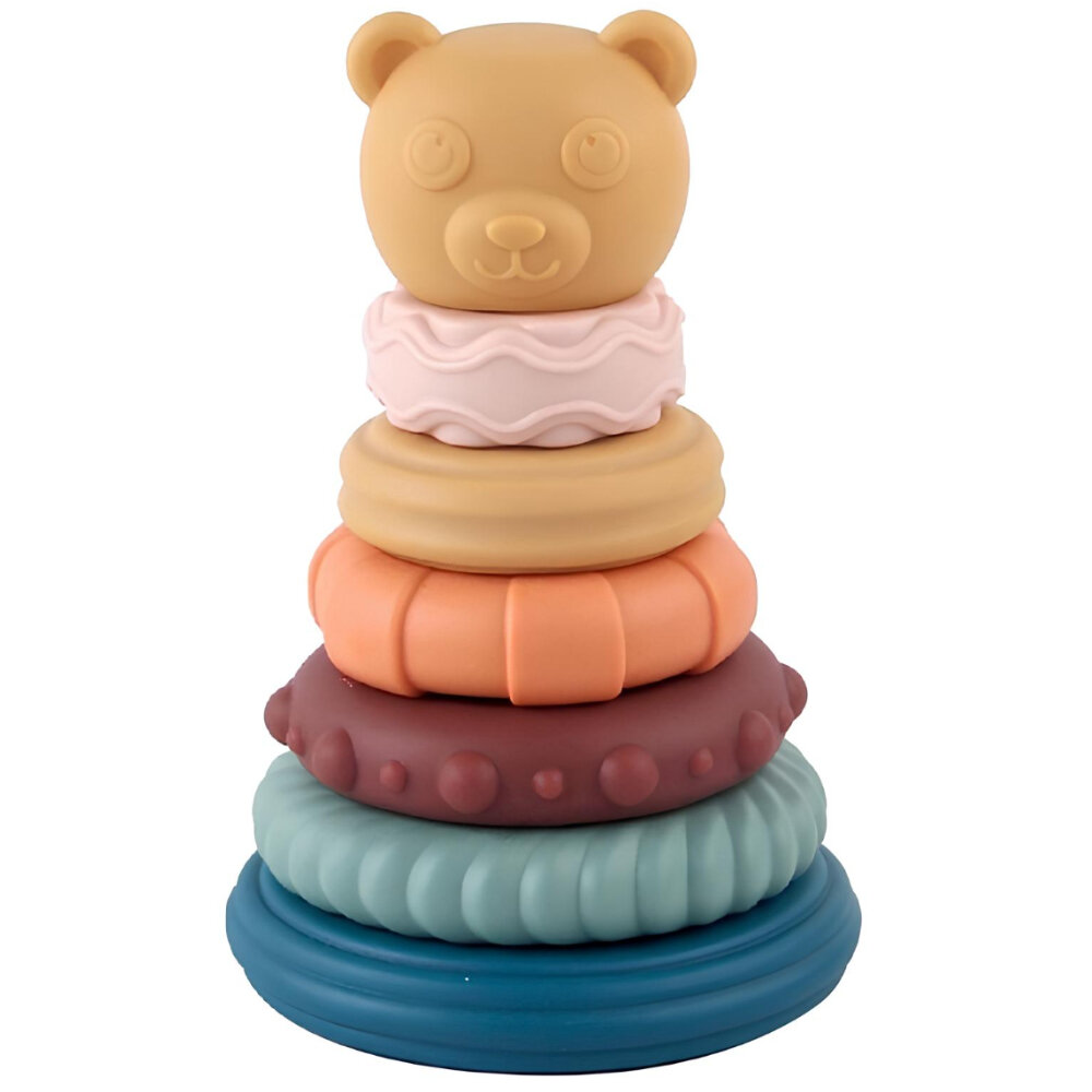 Игрушка детская резиновая пирамидка для малышей Мишка 10 х 10 х 15 см, 7 элементов, тактильные колечки грызунки, 638-56 интересное: