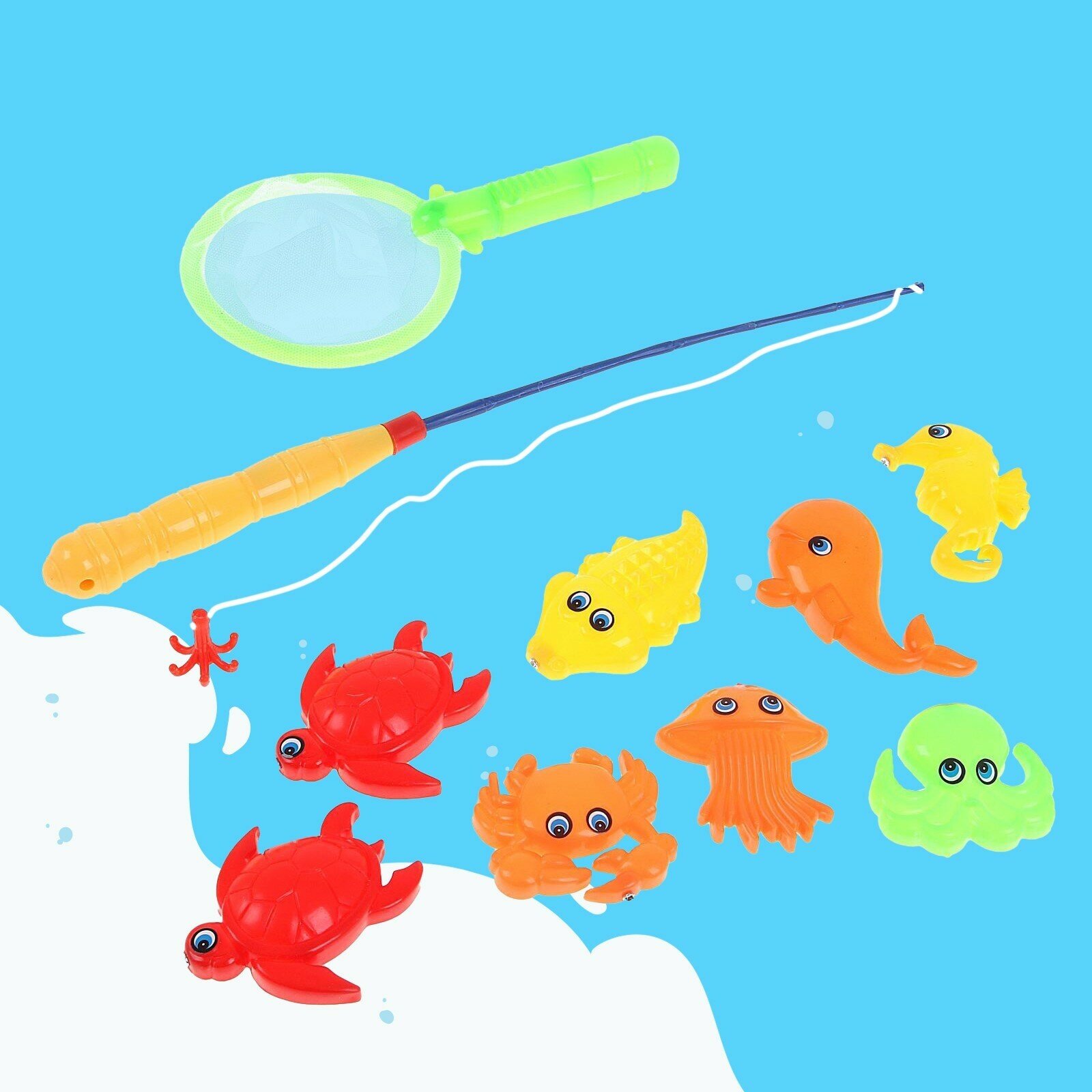 Магнитная рыбалка «Морские жители», 10 предметов: 1 удочка, 1 сачок, 8 игрушек, для детей и малышей, цвет микс интересное: