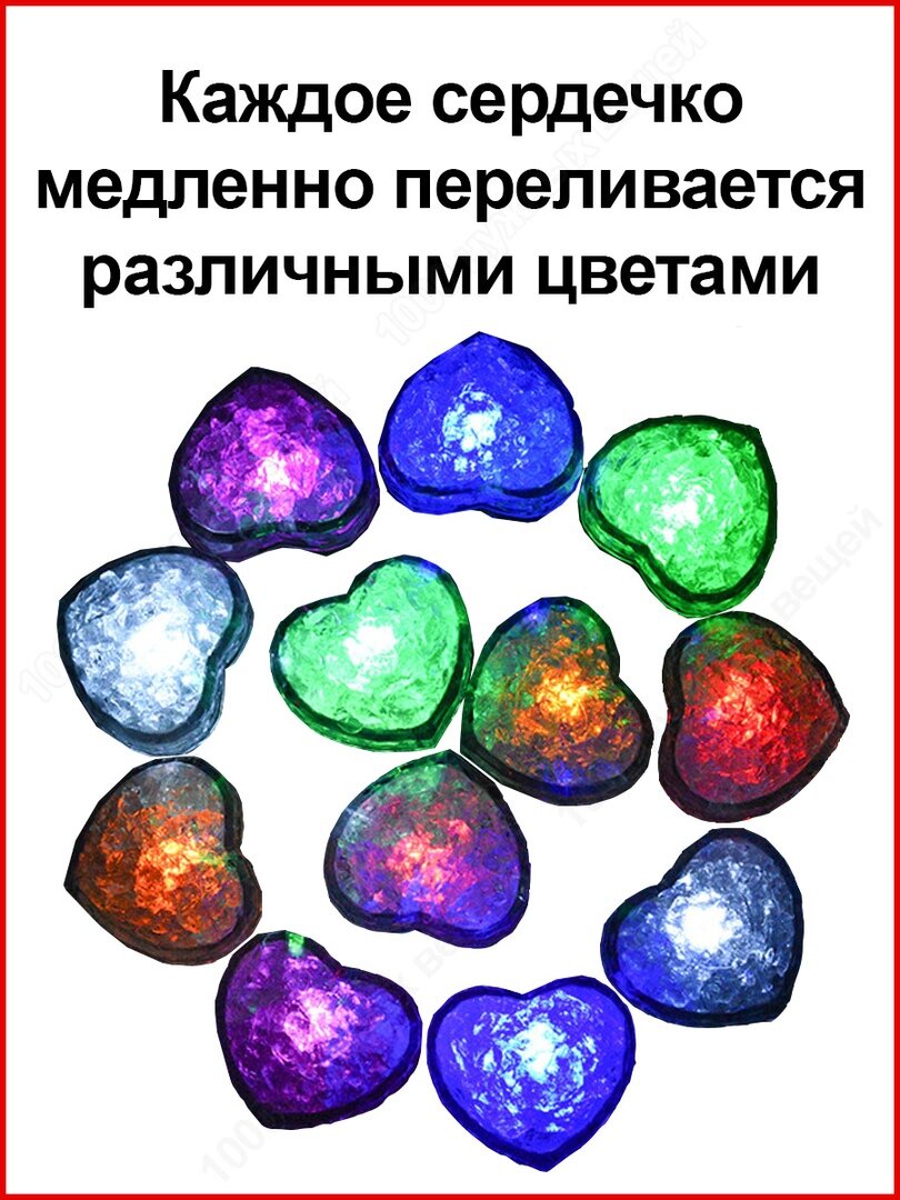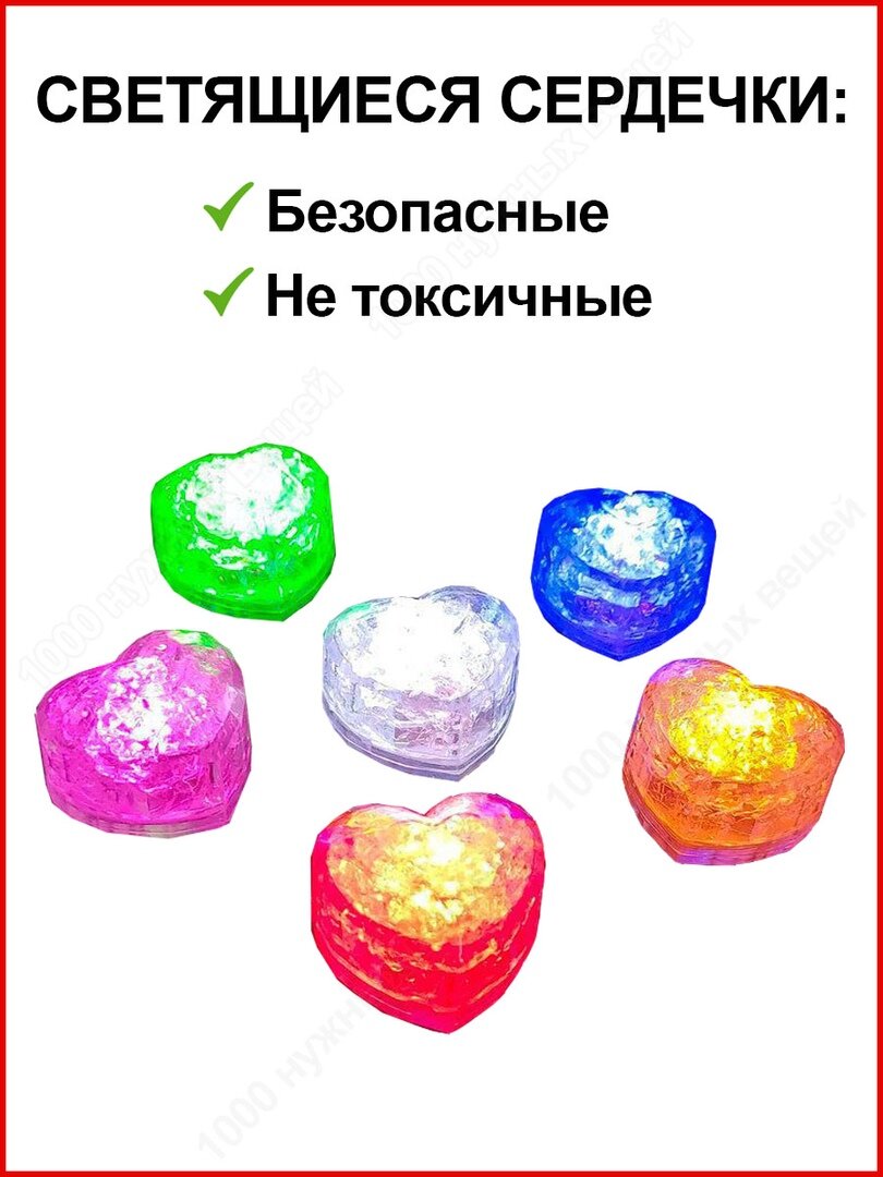 | Комплектация | 12 светящихся кубиков-сердечек для ванной |
