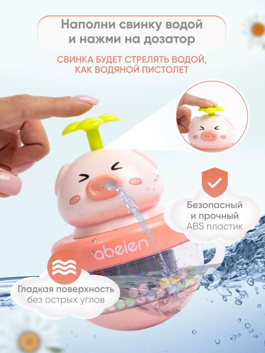 Игрушка для ванной ZONDER STAUBER, розовая, неваляшка,свинка интересное: