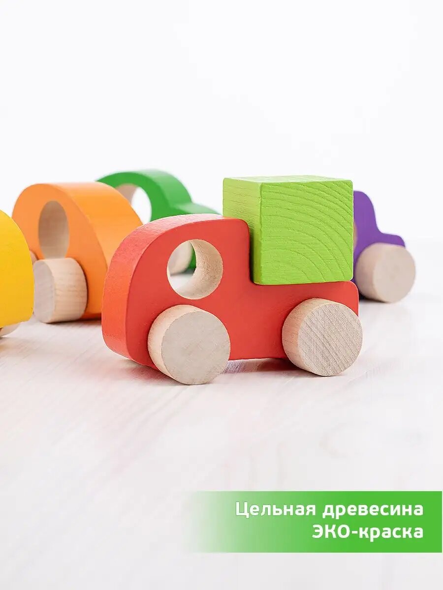 Деревянная фигурка-каталка Томик "Машинки", игровой набор из 5 разноцветных машинок, развивающая игрушка для малышей