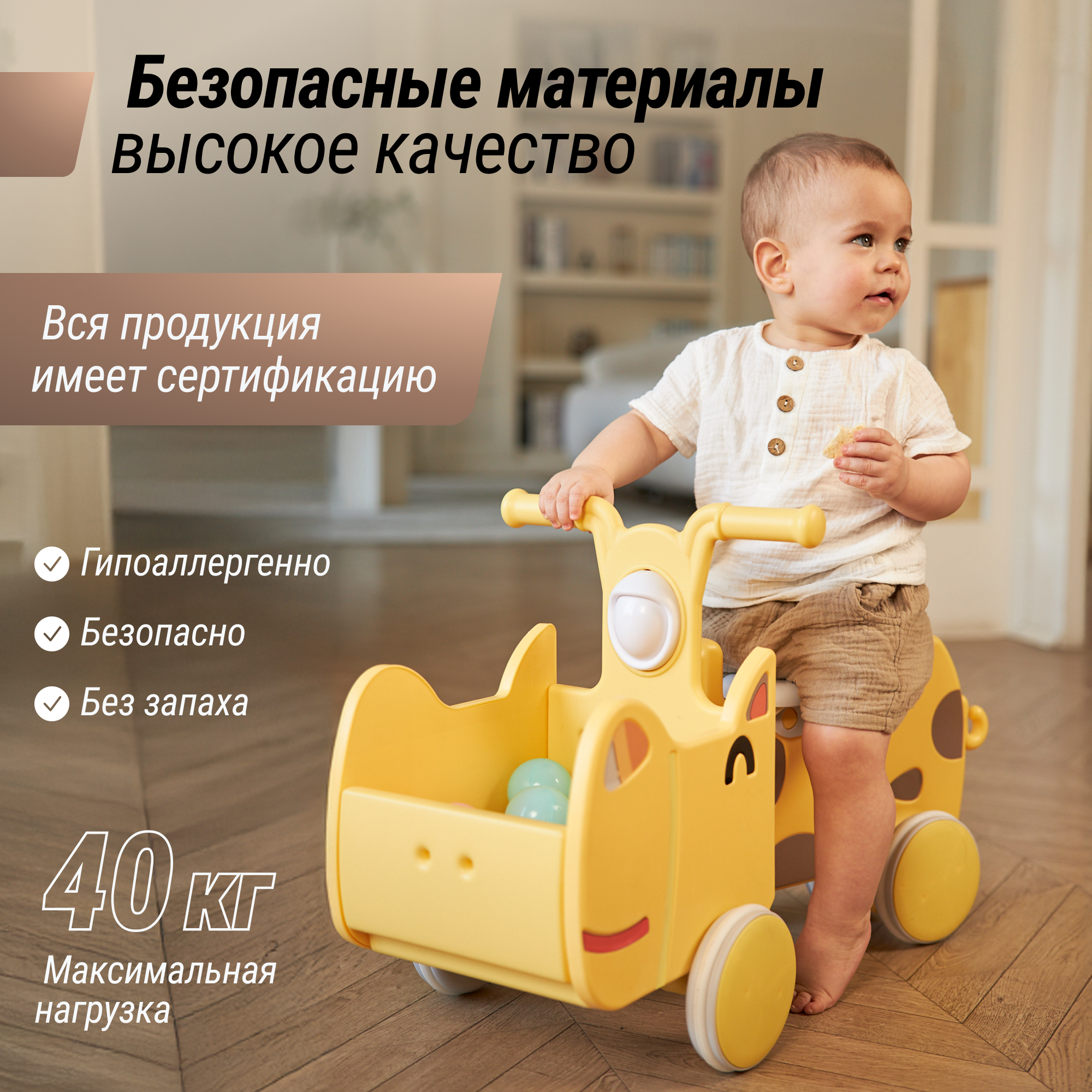 Машинка - каталка для детей с корзиной для игрушек UNIX Kids Hippo, для дома и улицы, от 1 года, 31х68x26 см, желтый интересное: