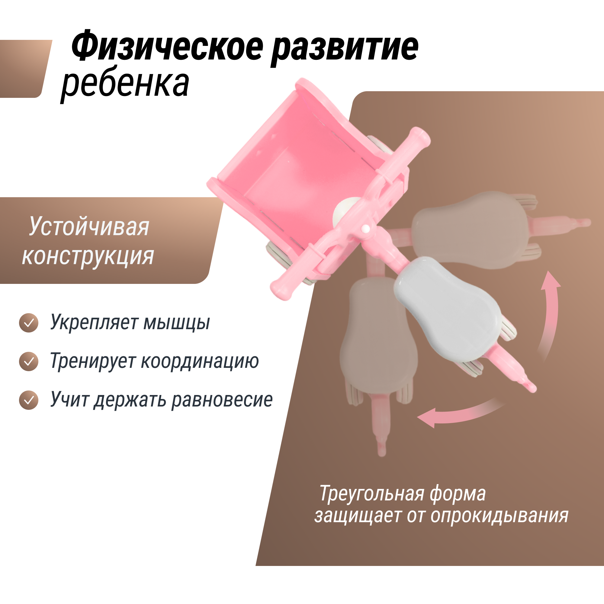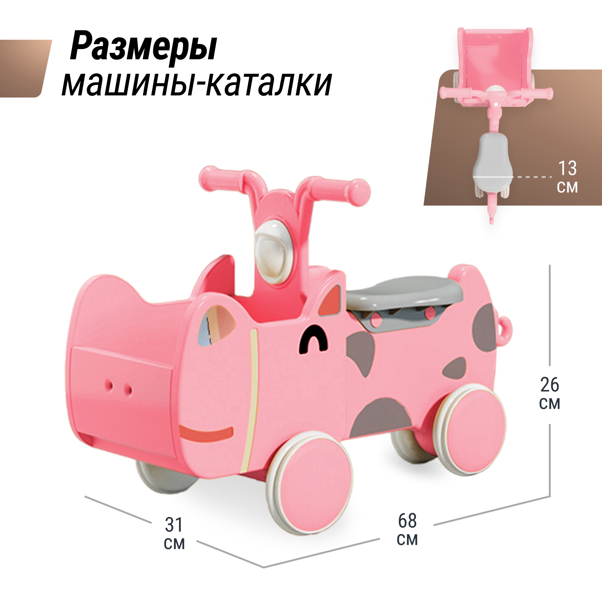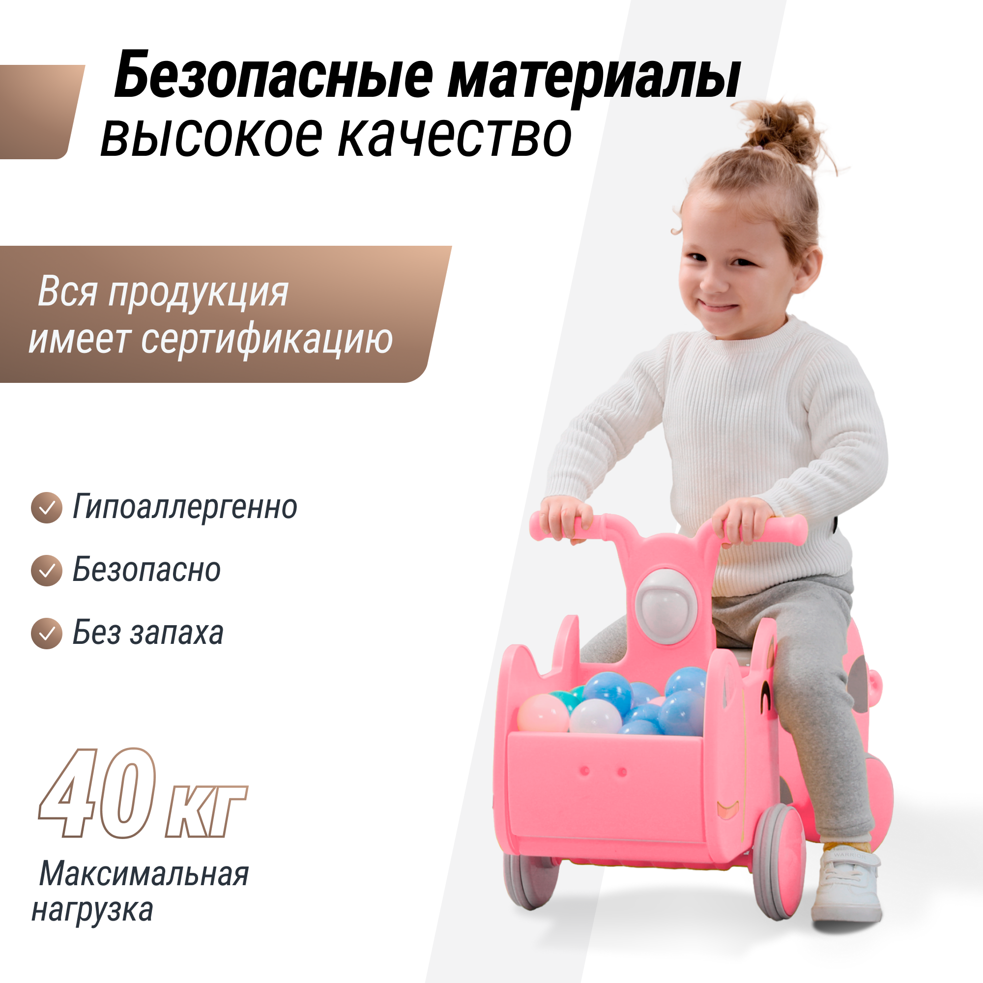 Машинка - каталка для детей с корзиной для игрушек UNIX Kids Hippo, для дома и улицы, от 1 года, 31х68x26 см, розовый интересное: