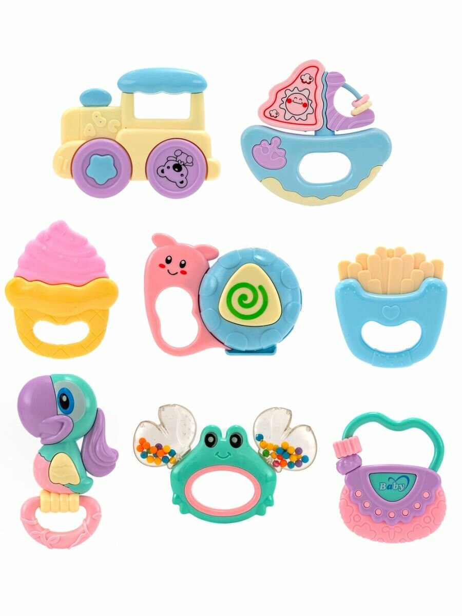 Погремушки для новорожденных ,Бим-Бом набор погремушек для малышей в сумке, 8 штук, микс