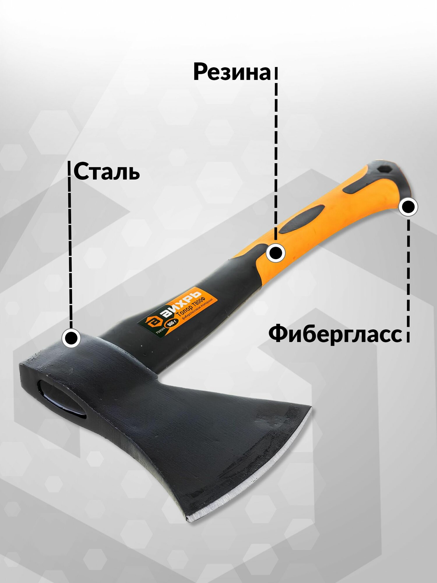 Топор Вихрь Т800Ф (фиберглассовое топорище)