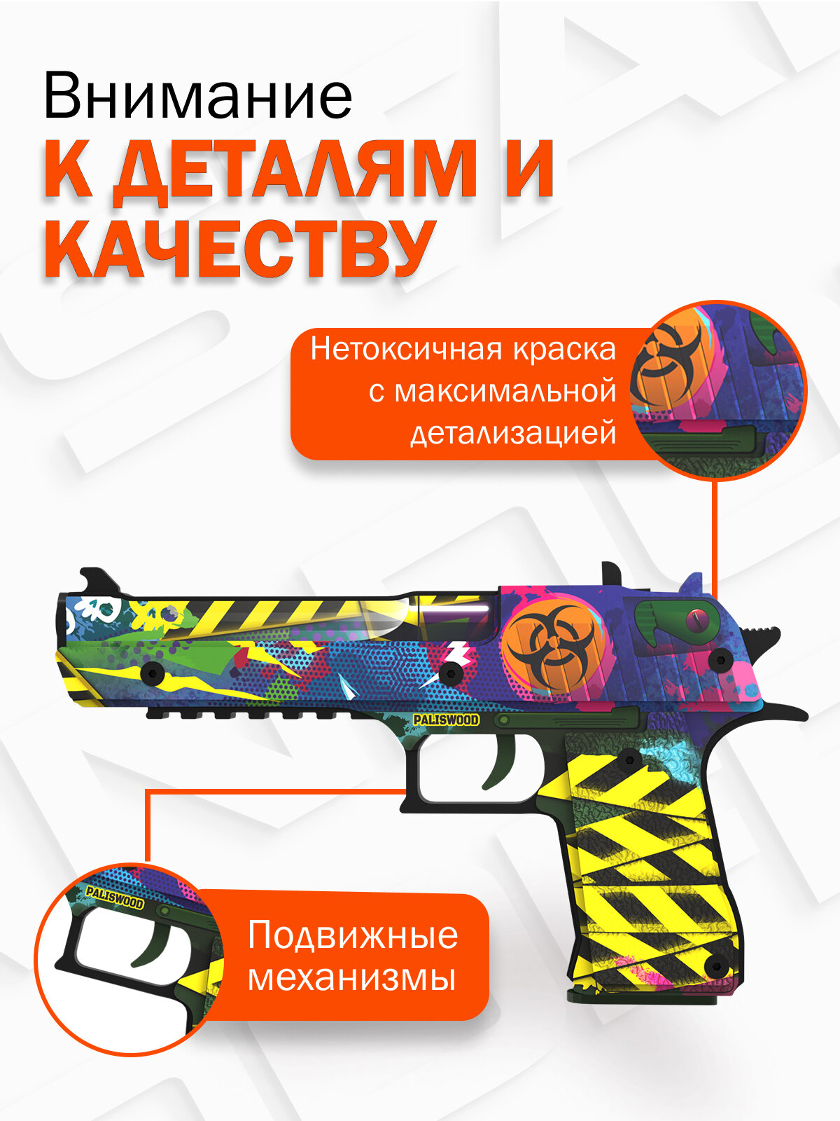 Деревянный пистолет резинкострел Desert Eagle Фьюжен кор Word of standoff интересное: