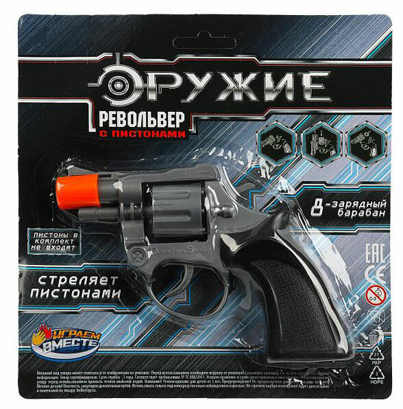 Купить Револьвер для стрельбы пистонами 8 зарядов, блист.18*19*5см играем вместе в кор.8*36шт