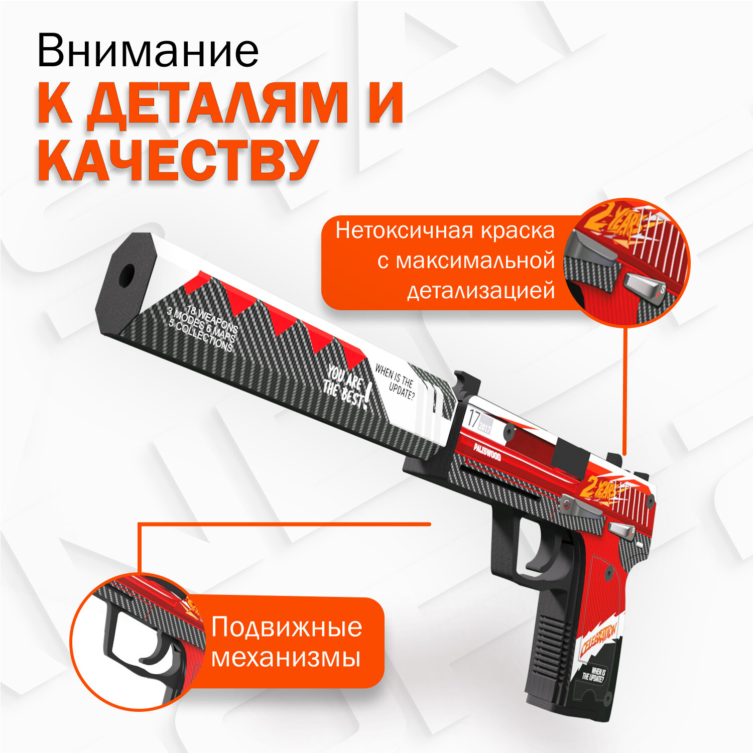 Деревянный пистолет резинкострел ЮСП 2 года красный / USP-S 2 years red / Words of standoff интересное:
