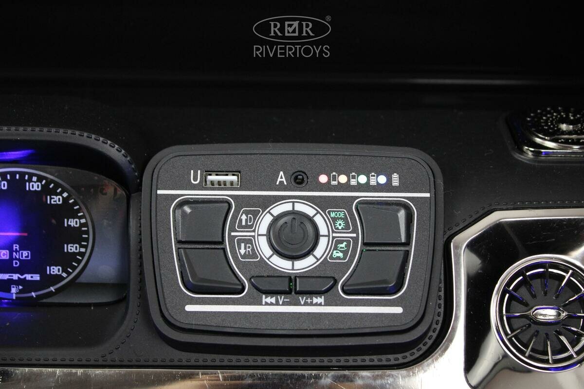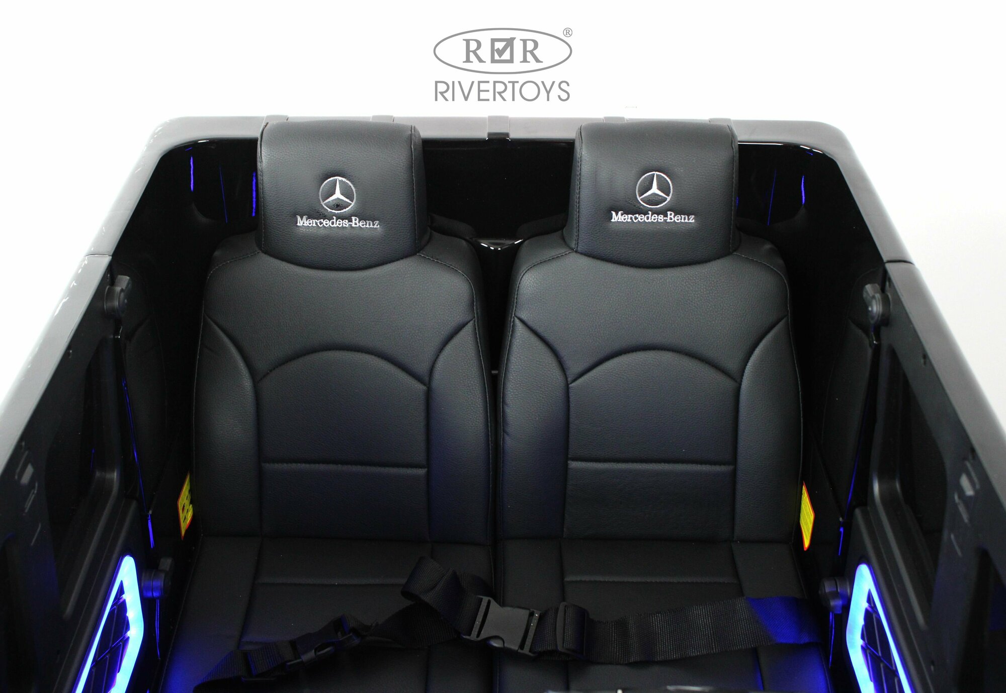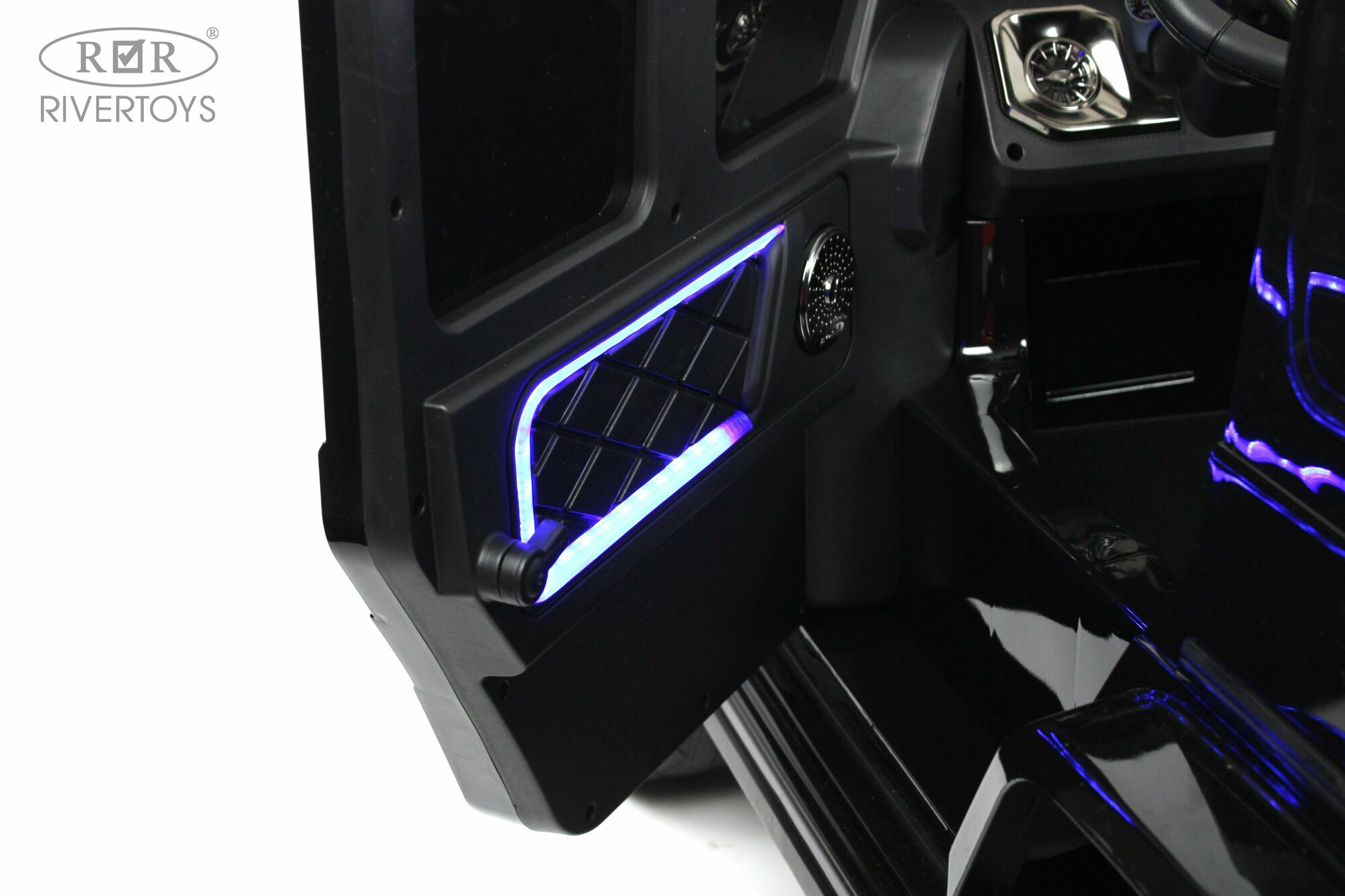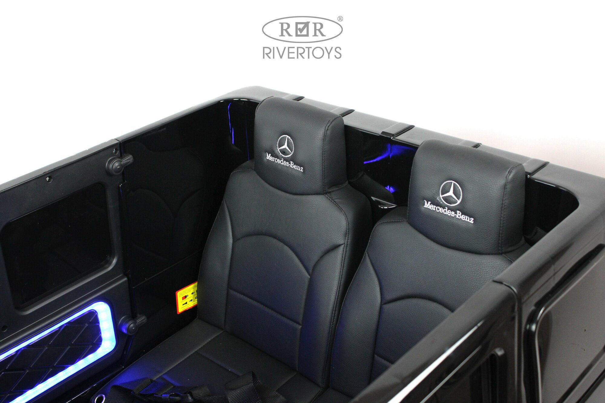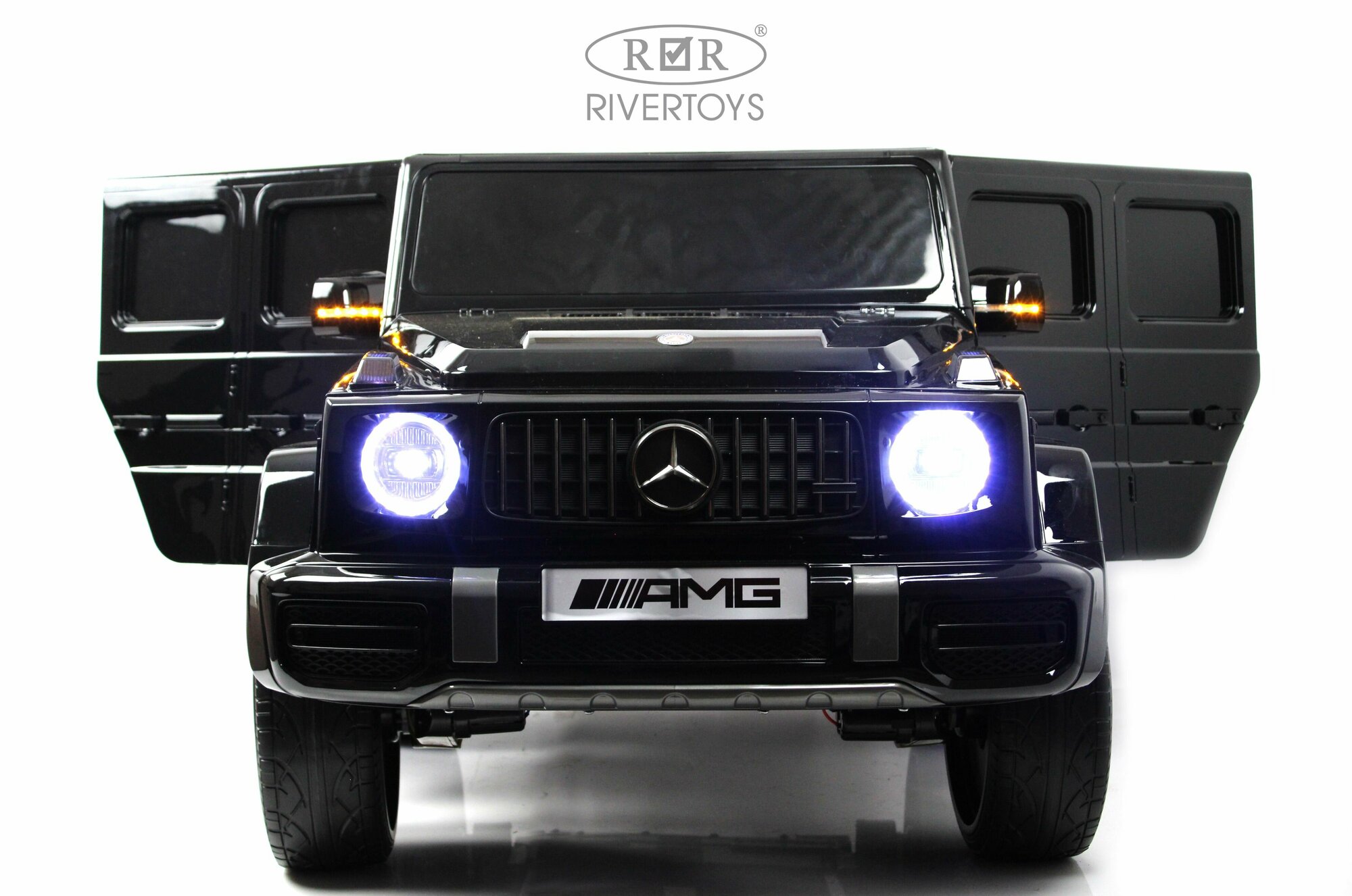 Детский электромобиль RiverToys Mercedes-AMG G63 (G111GG) 24V черный глянец с дистанционным управлением, двухместный, полноприводный