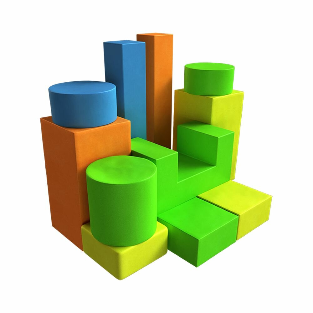 | Комплектация | прямоугольник: 600 х 300 х 100 - 2 шт, брус: 600 х 150 х 150 - 2 шт, столбик: 600 х 300 х 300 - 2 шт, прямоугольник: 300 х 300 х 100 - 1 шт, цилиндр: 300 х 300 х 300 - 1 шт, цилиндр: 300 х 300 х 150 - 2 шт, мост: 600 х 300 х 300 - 1 шт |