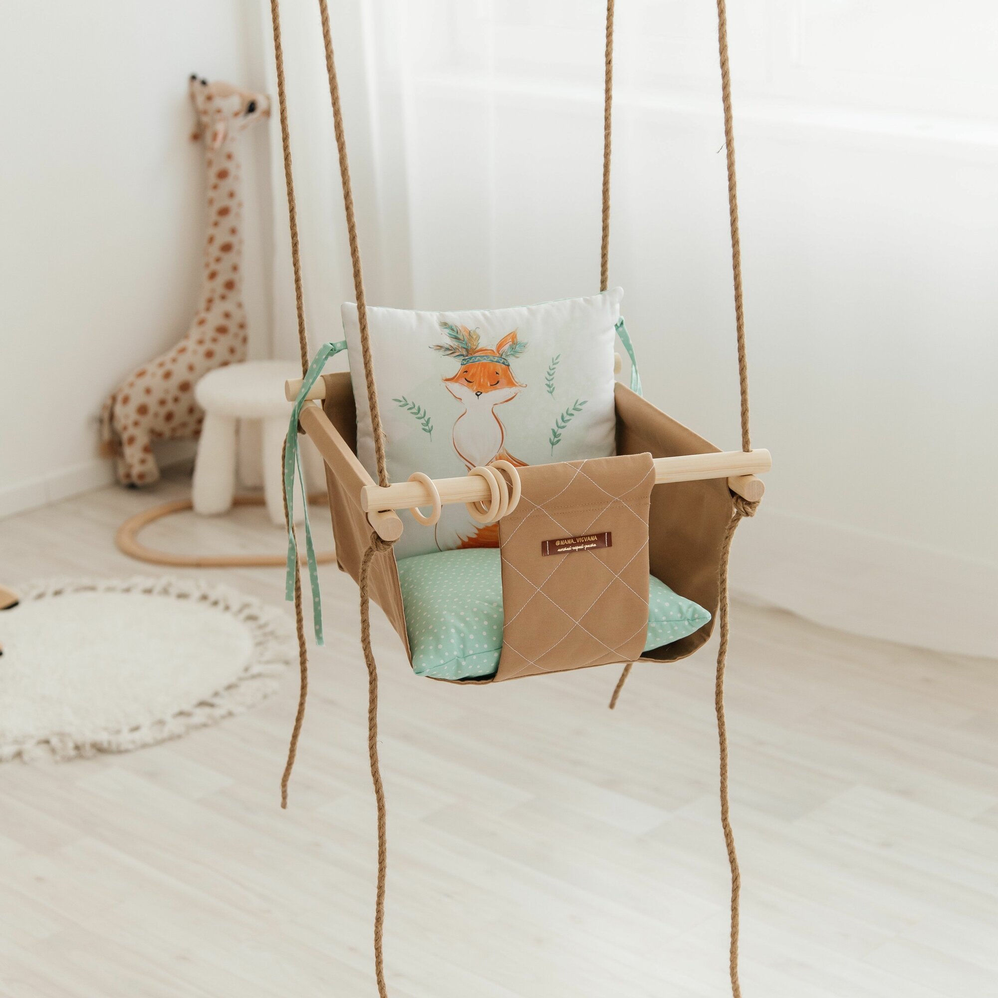 Качели подвесные детские тканевые с ремнем безопасности для дома и дачи "Лесные жители" подушка Лисичка с 6 месяцев интересное: