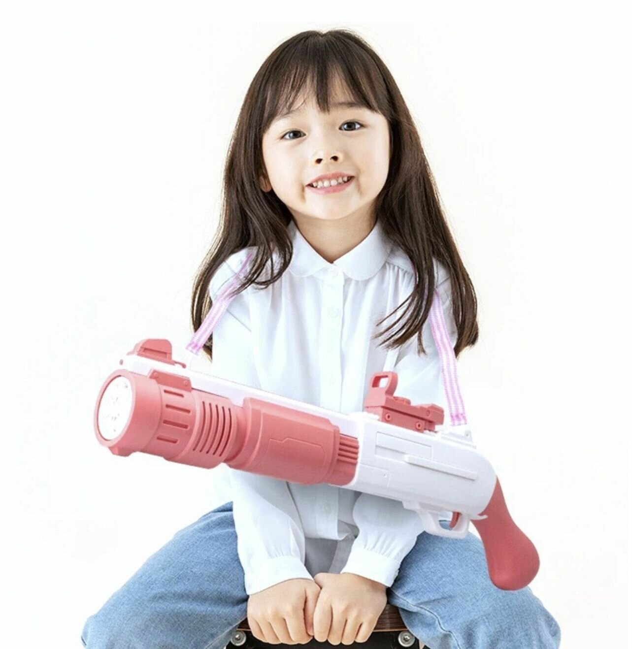 Генератор мыльных пузырей светло-розовый, пистолет-бластер 64- луночный